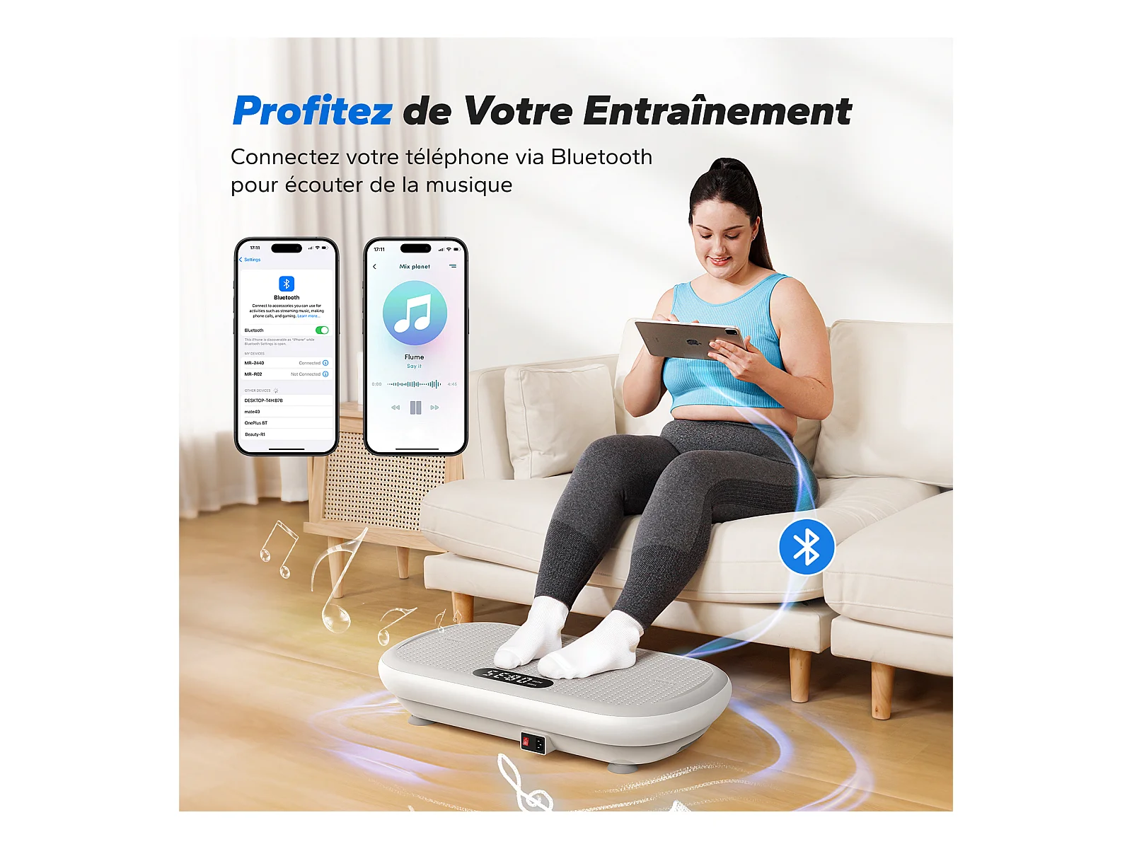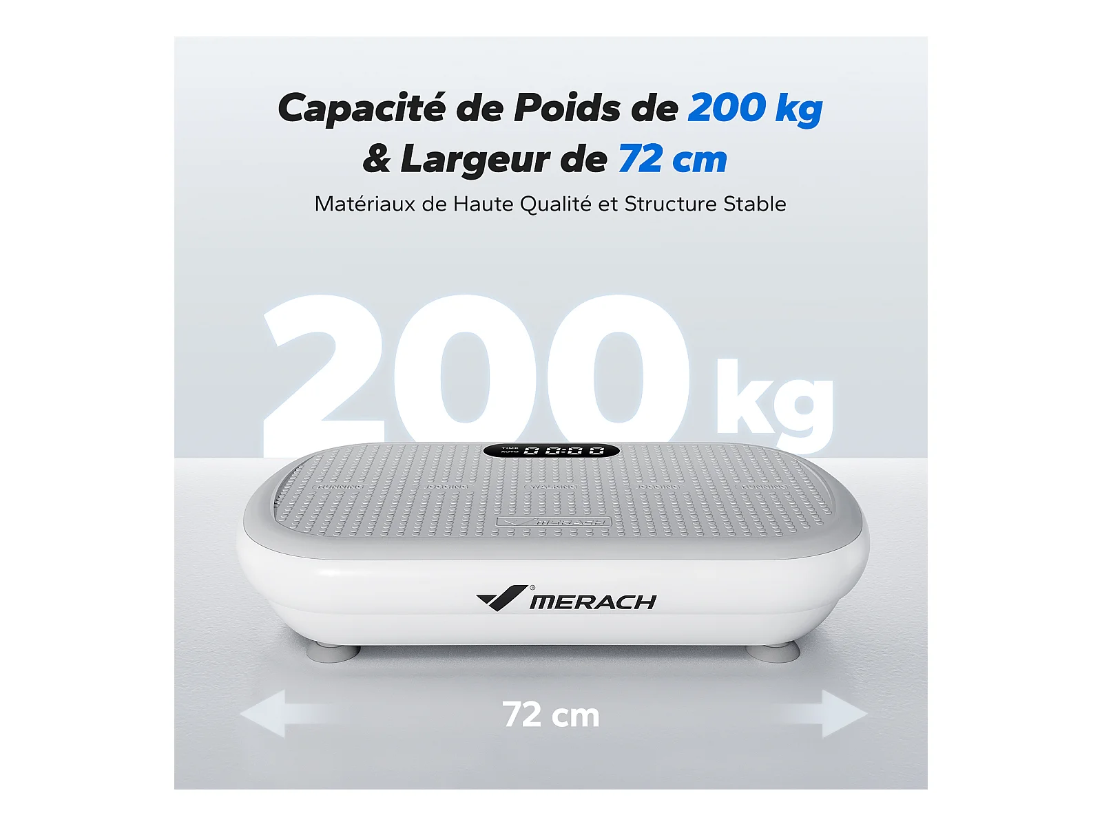 Plateforme Vibrante MERACH, 10 vitesses, 11 programmes, LED, Bluetooth, télécommande, charge max 200 kg