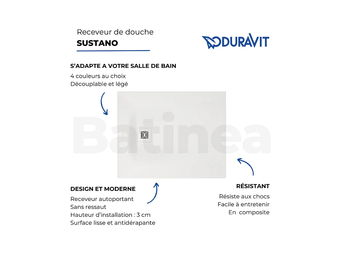 Receveur de douche 90 x 90 DURAVIT Sustano Gris