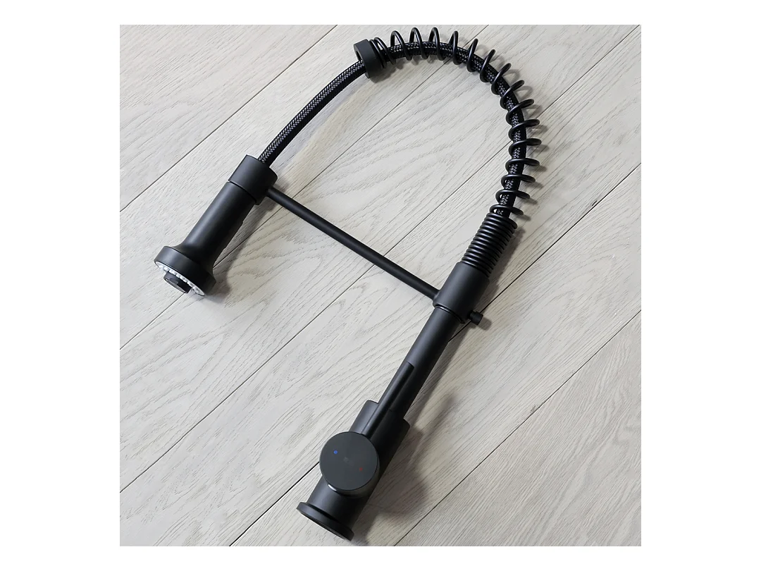 Style Mitigeur évier à douchette extractible noir mat et or rose - Essebagno
