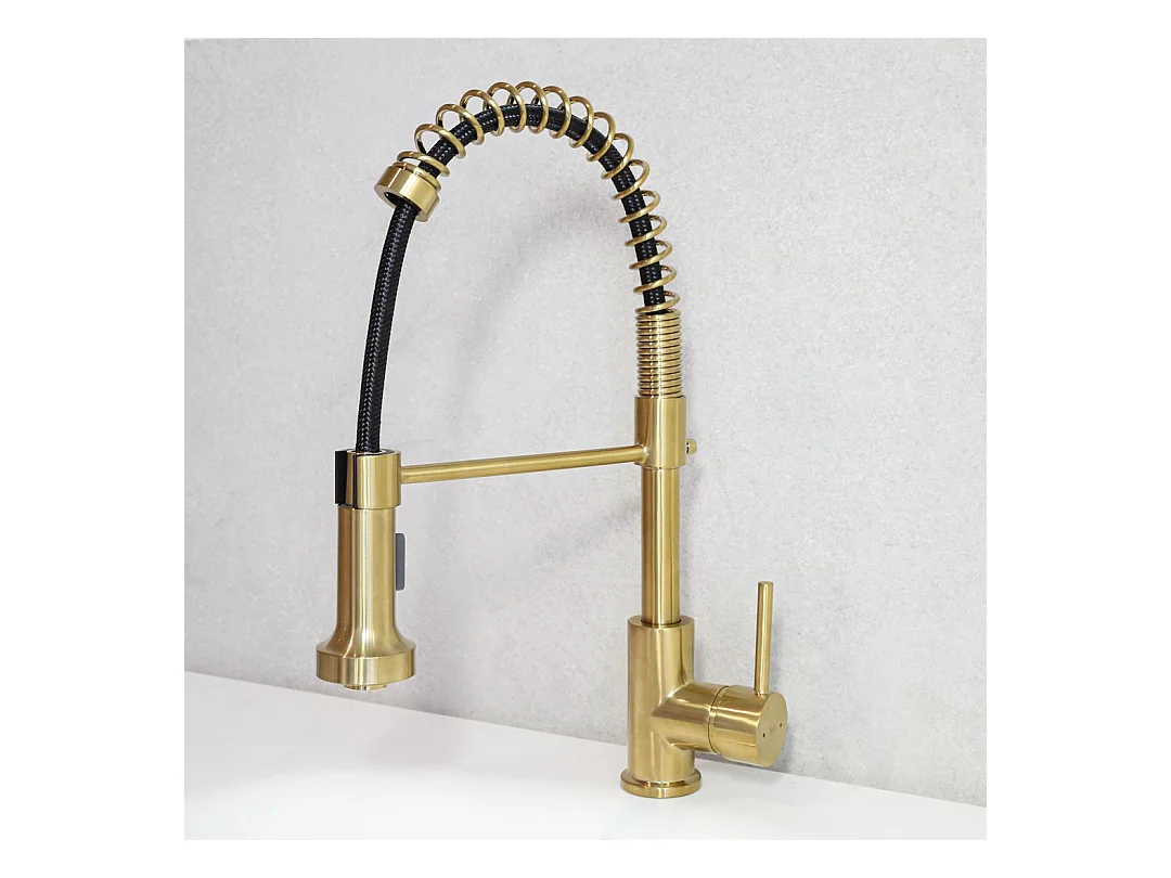 Portofino mitigeur évier à douchette extractible or brossé - Essebagno