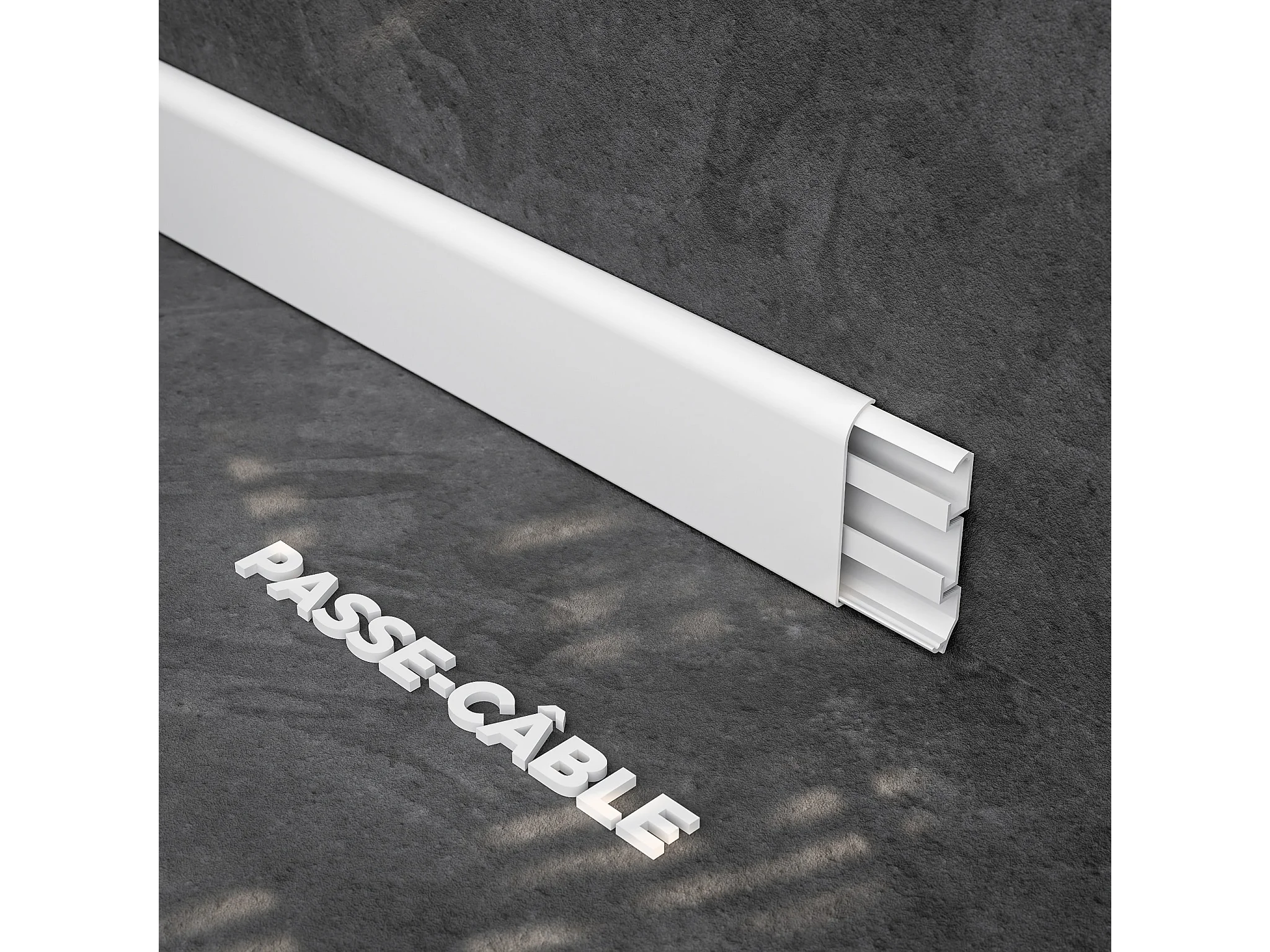 Plinthe Passe-Câble PVC 80 mm - Blanc - 1.80 m, À l'unité