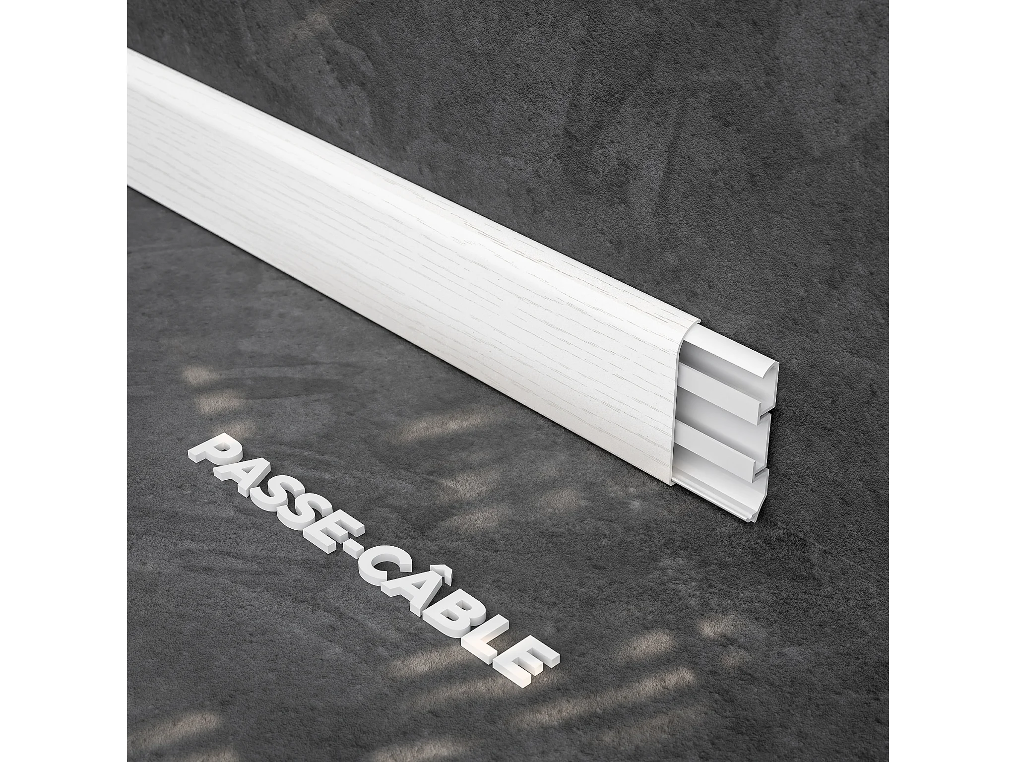 Plinthe Passe-Câble PVC 80 mm - Frêne Blanc - 1 m