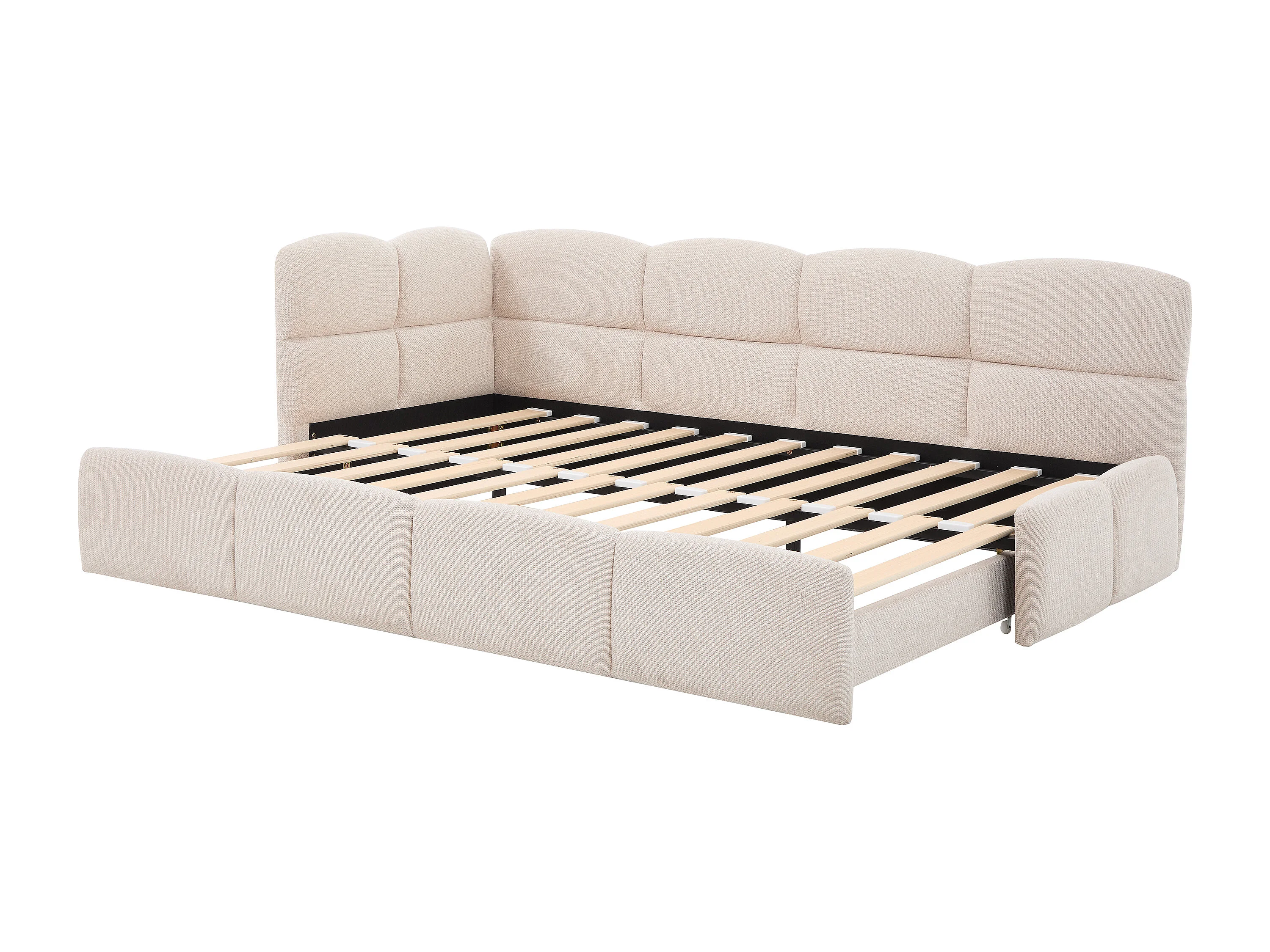Lit gigogne 2 x 80 x 200 cm – Avec sommier peigne – Tissu texturé – Beige + Matelas – PLURANIO