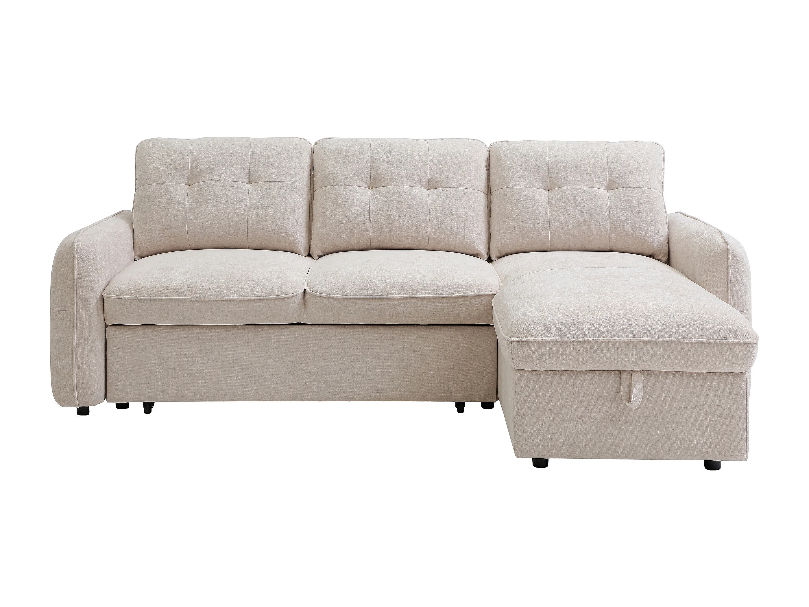 Canapé d'angle convertible et réversible en tissu texturé beige POBAVA