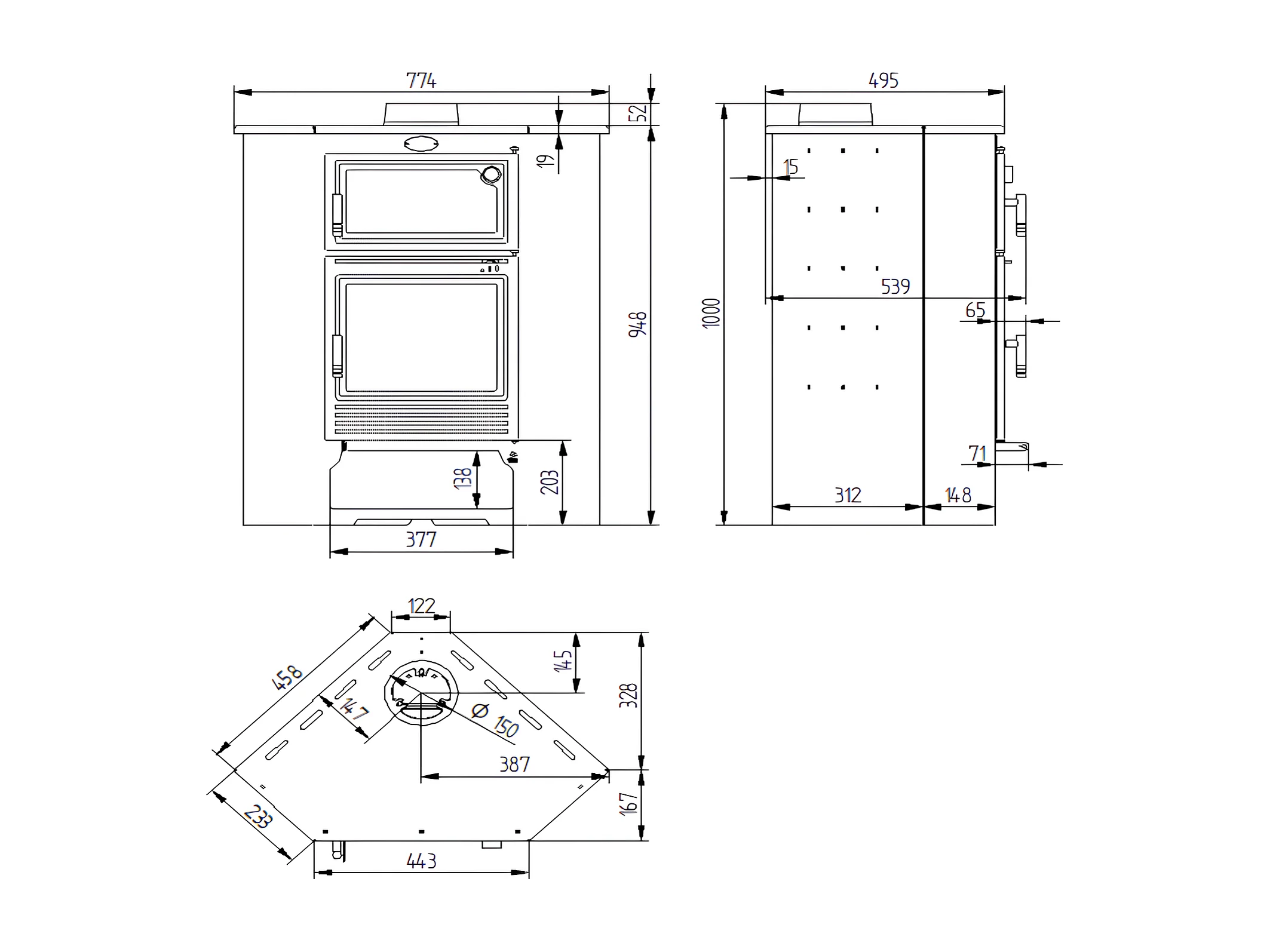 Poêle à bois de coin en acier, four supérieur de face, bûcher inférieur - DualFlame