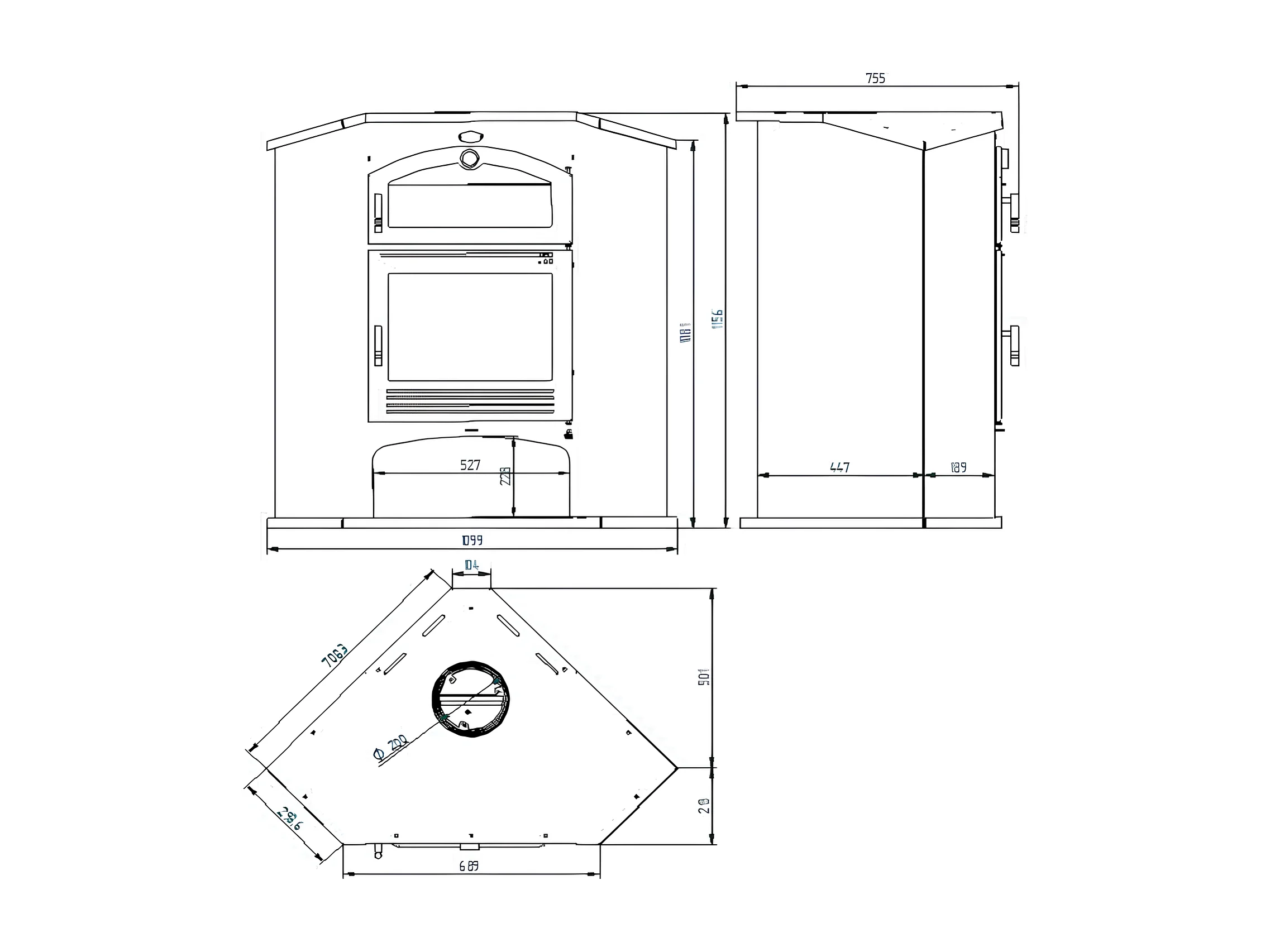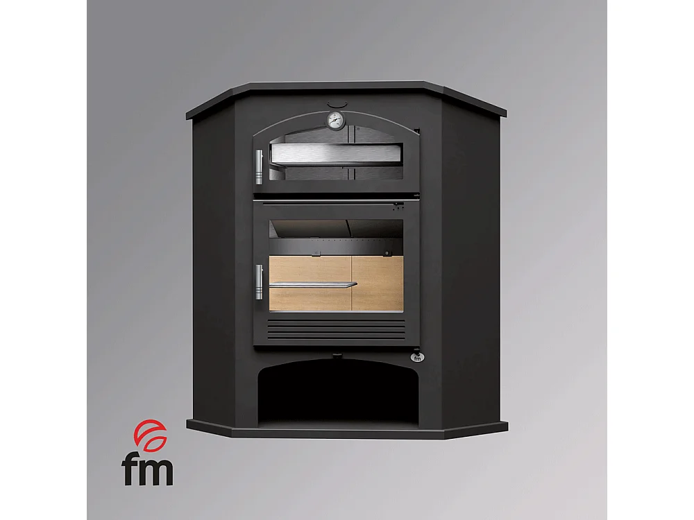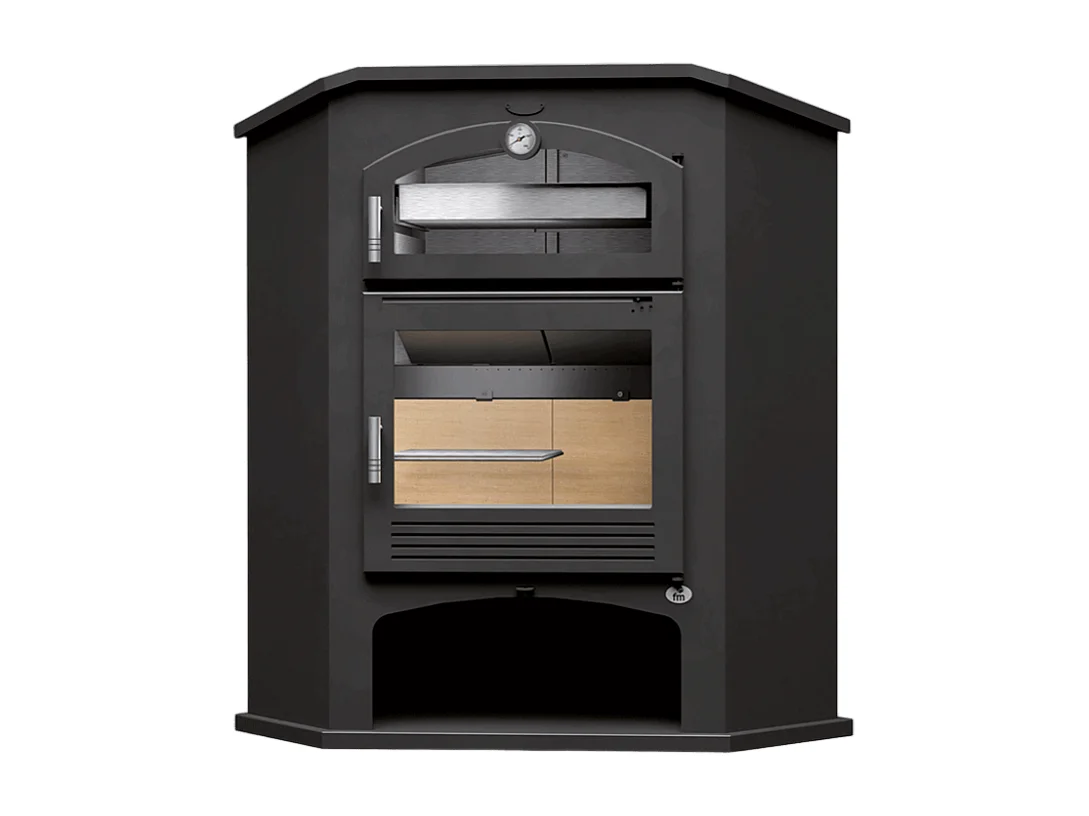 Poêle à bois de coin en acier, Four supérieur de face, bûcher inférieur - FlammaNova