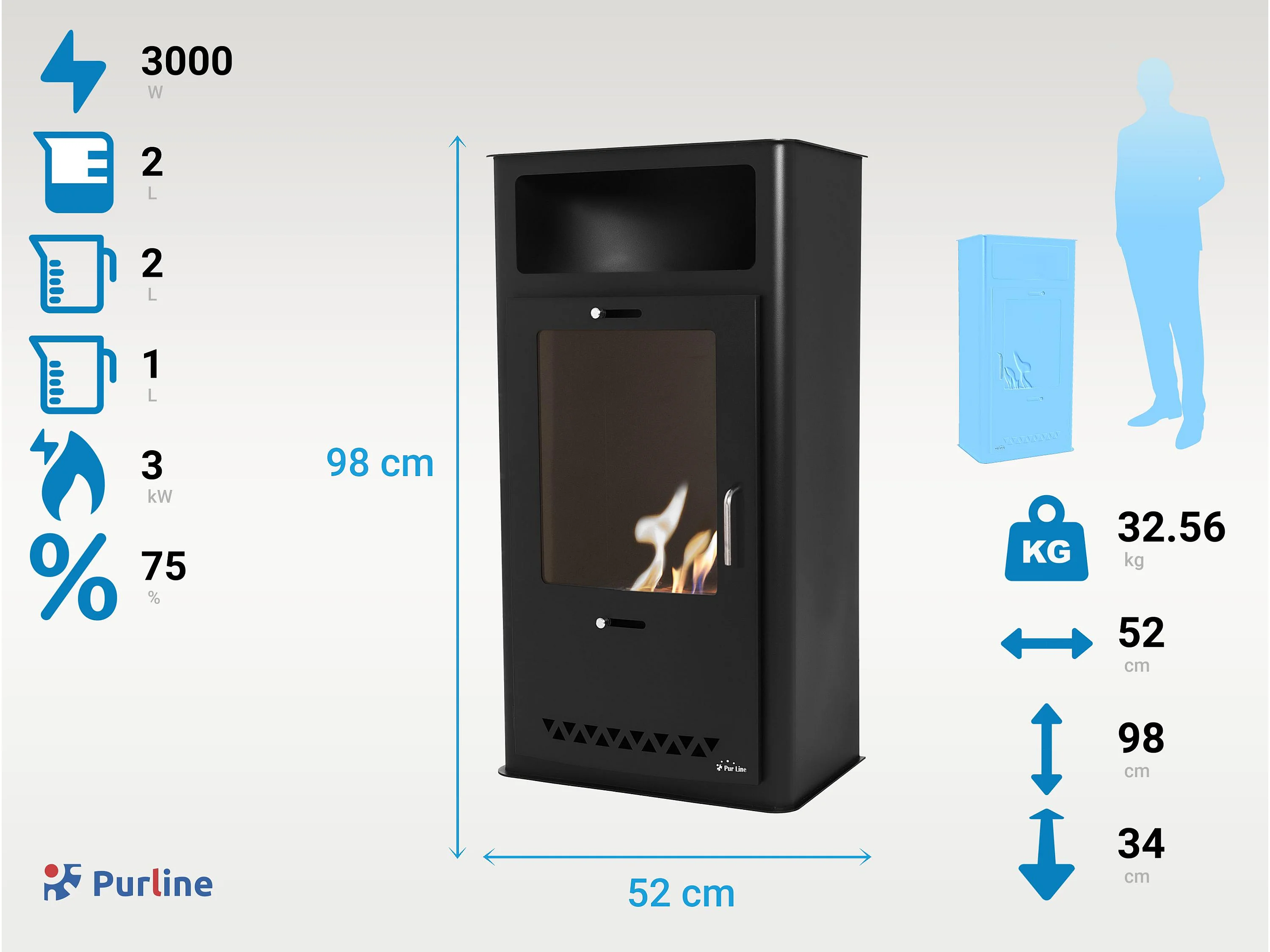Poêle à éthanol 3kW design rectangulaire en acier noir