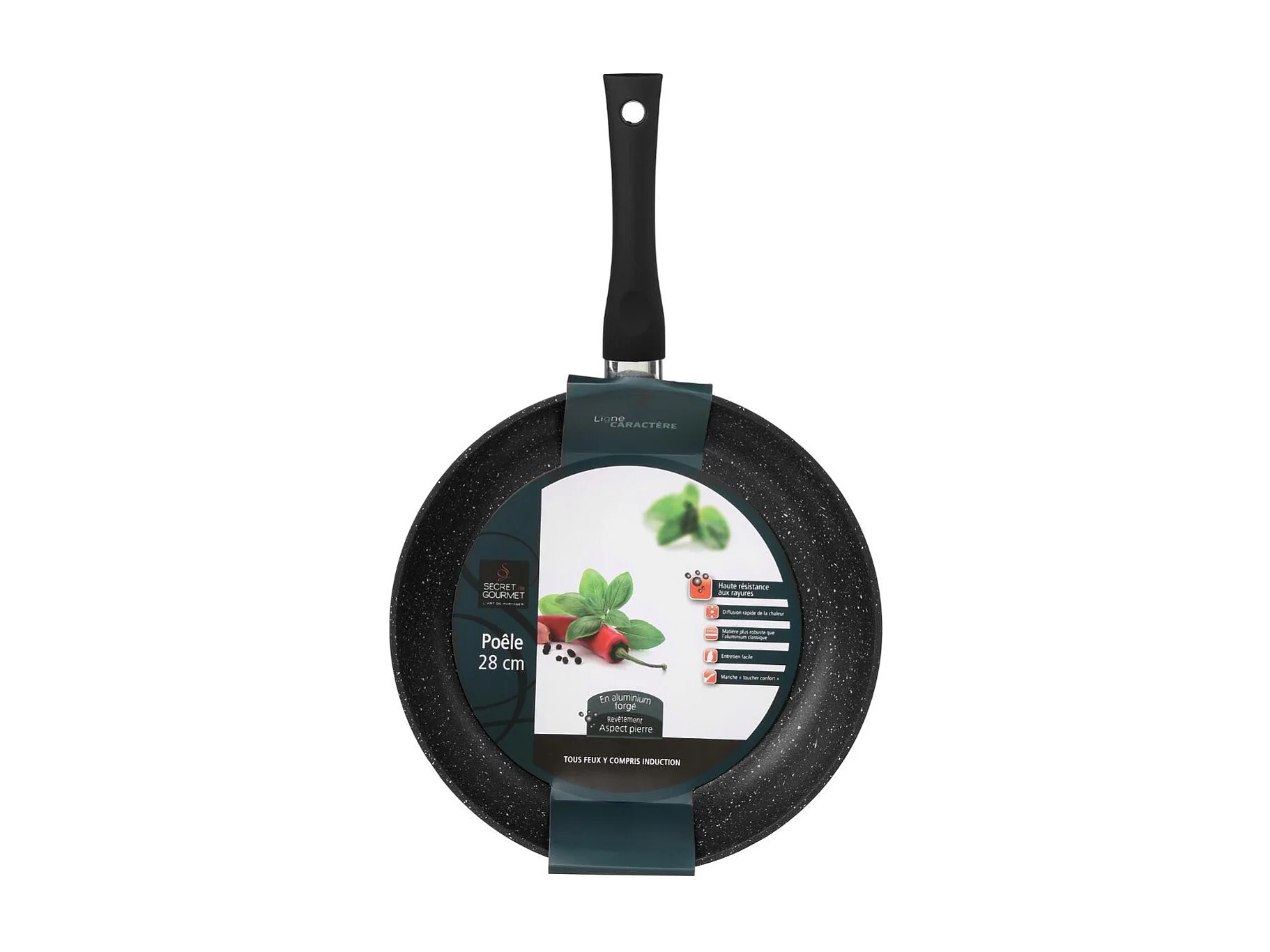 Lot de 2 Poêles & 1 Poignée Amovible "Pierre" 28cm Noir