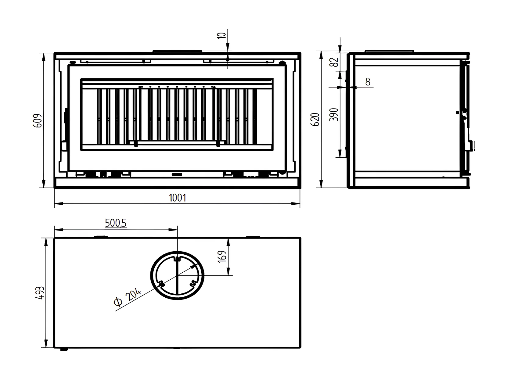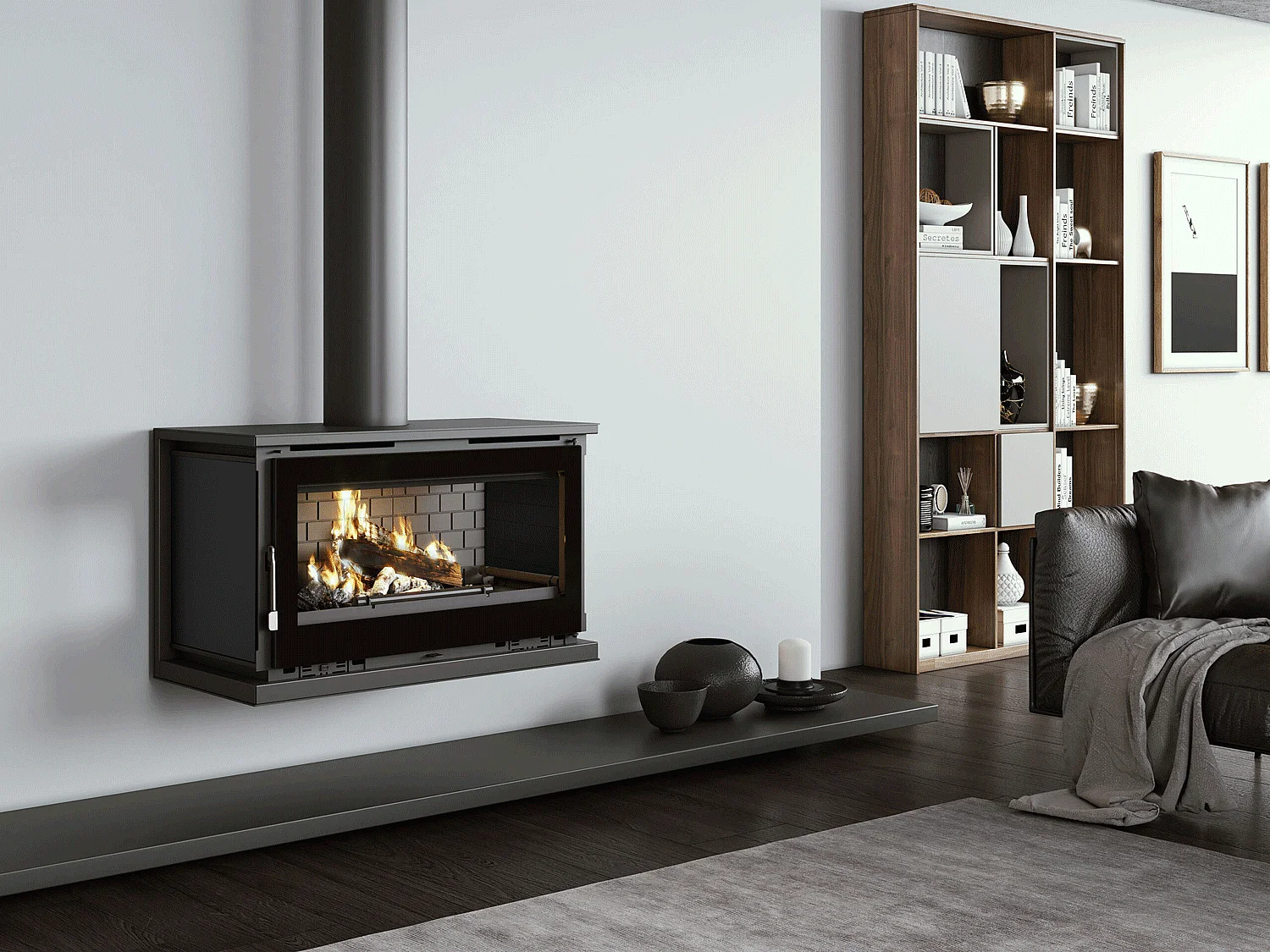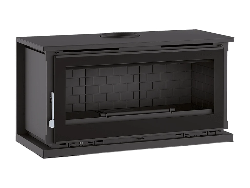Poêle-cheminée à suspendre, avec turbines, verre serigraphié- ArboFire - Intérieur en fonte