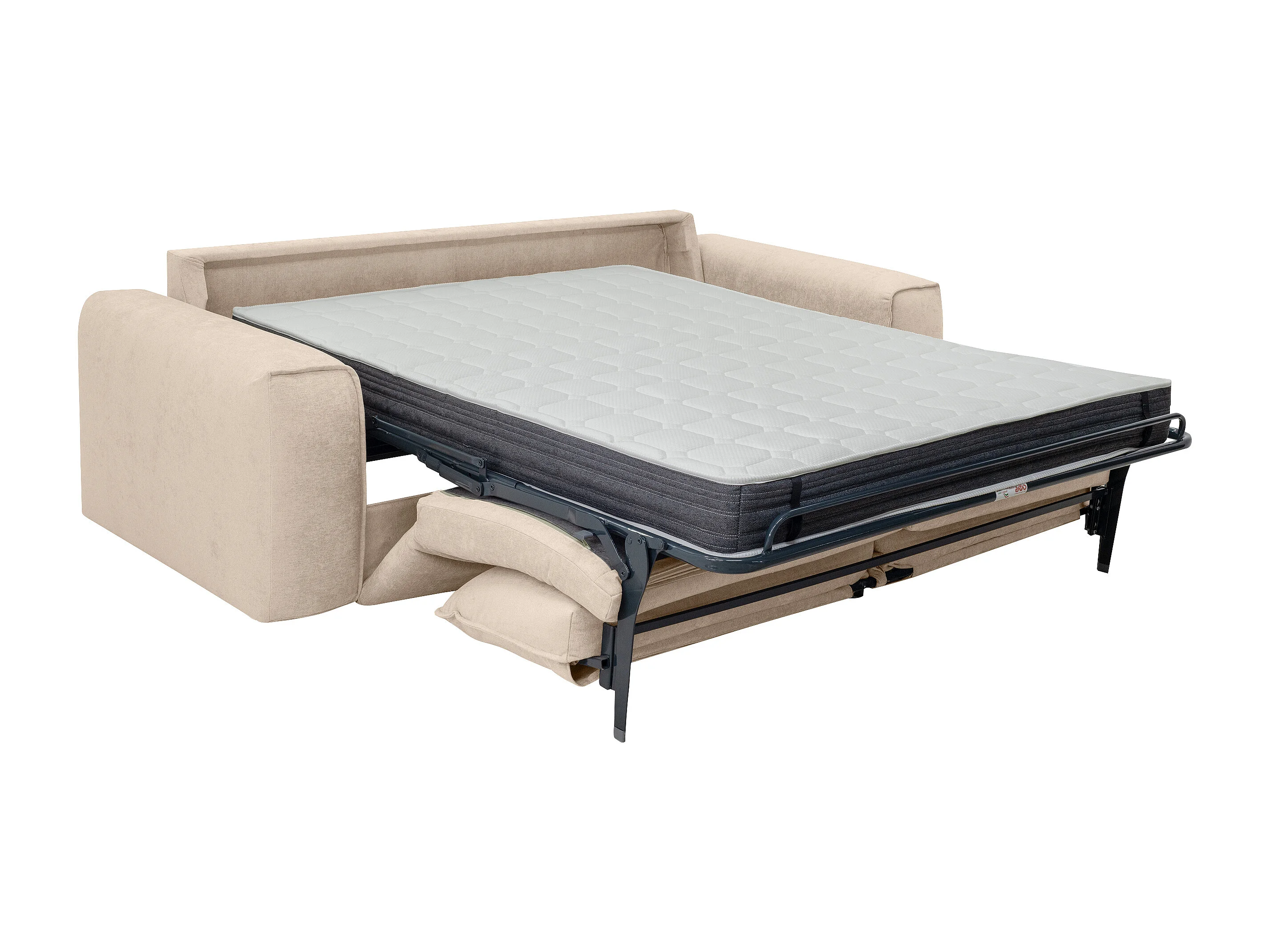 Canapé 4 places convertible express en tissu beige - Couchage 160 cm Matelas 16 cm POGLO