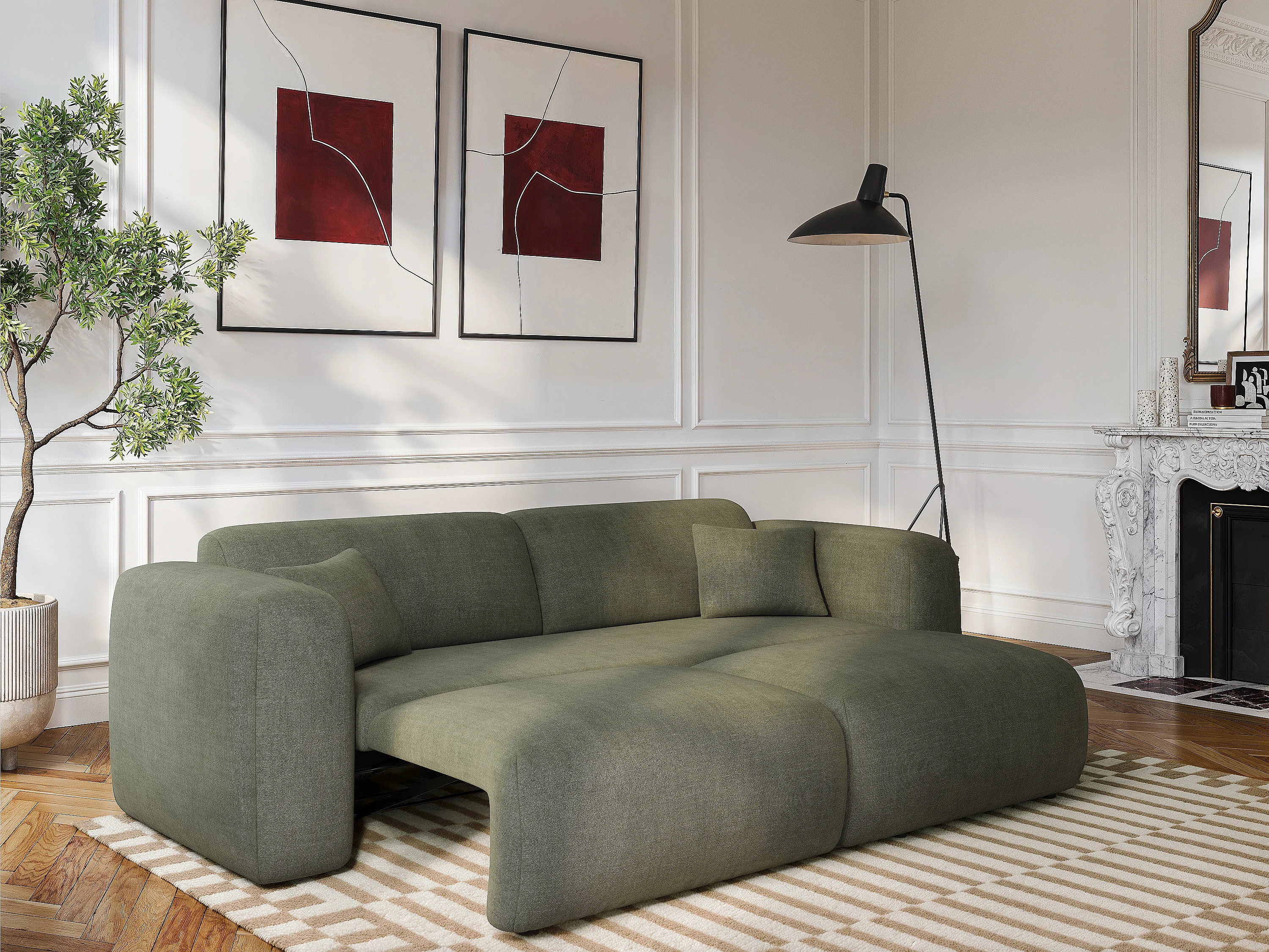 • De l’assise au couchage avec fluidité : Le mécanisme convertible tiroir transforme le canapé en lit en toute simplicité.