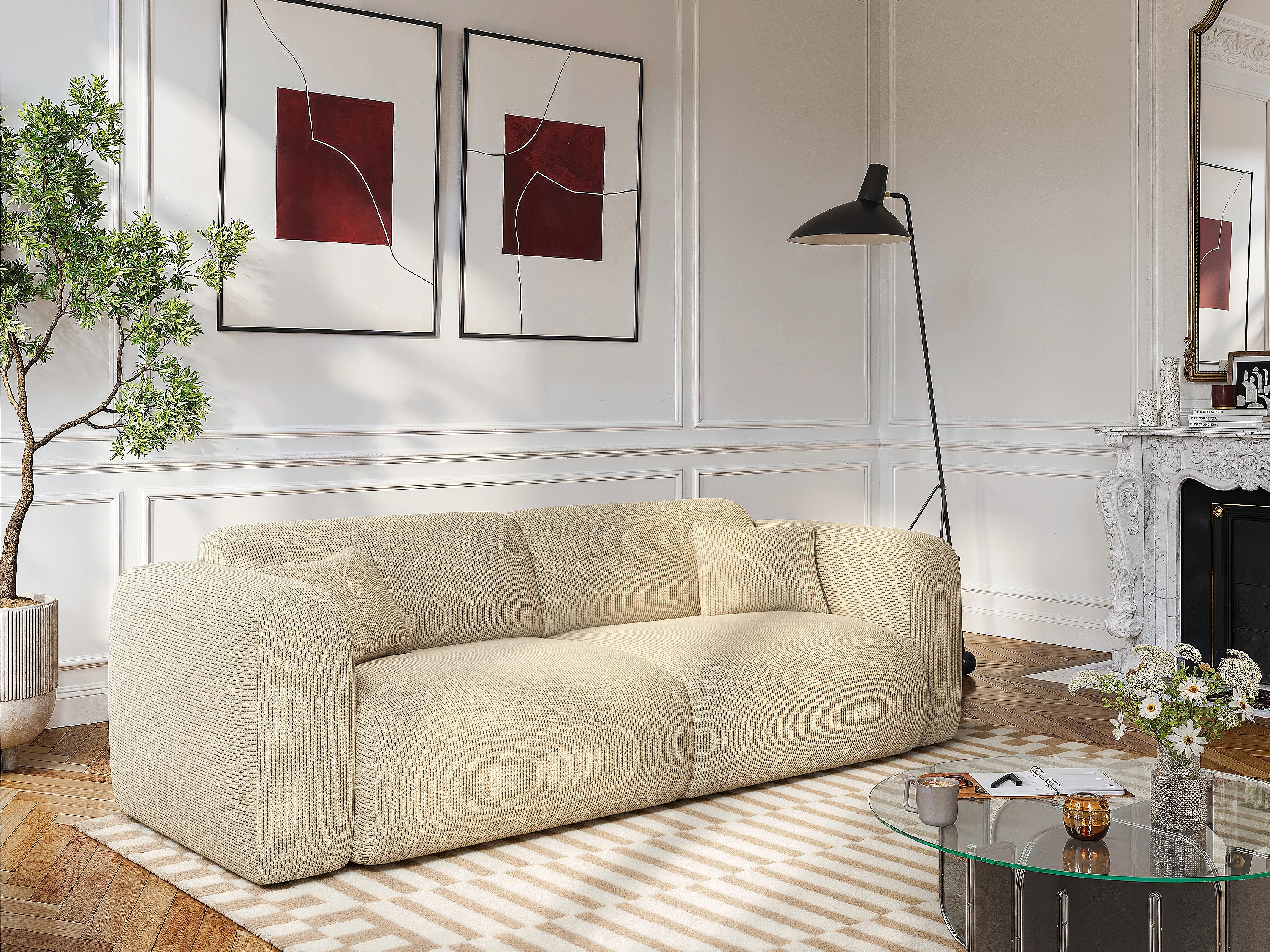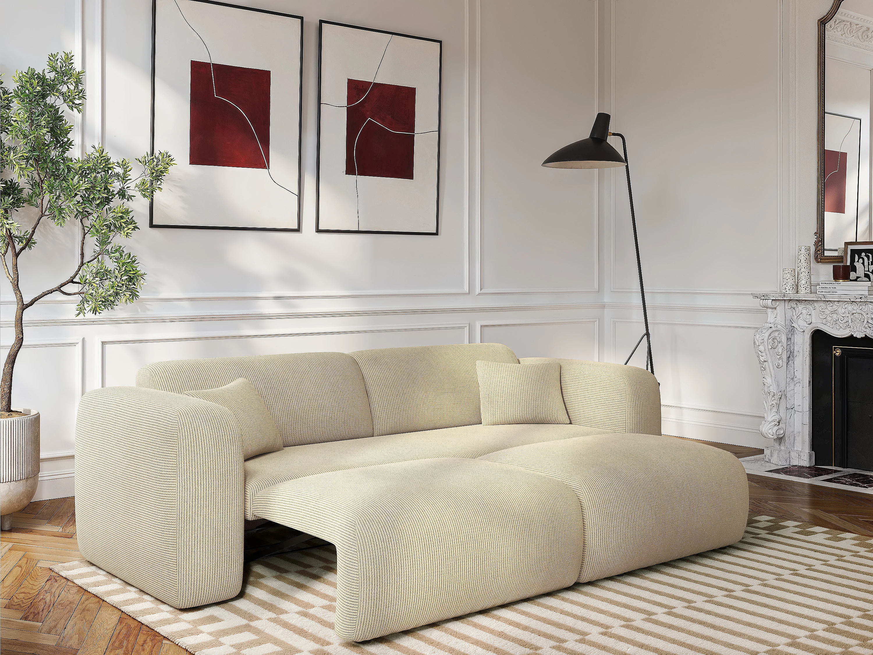 Canapé 4 places convertible en velours côtelé fines côtes beige POGNI de Maison Céphy