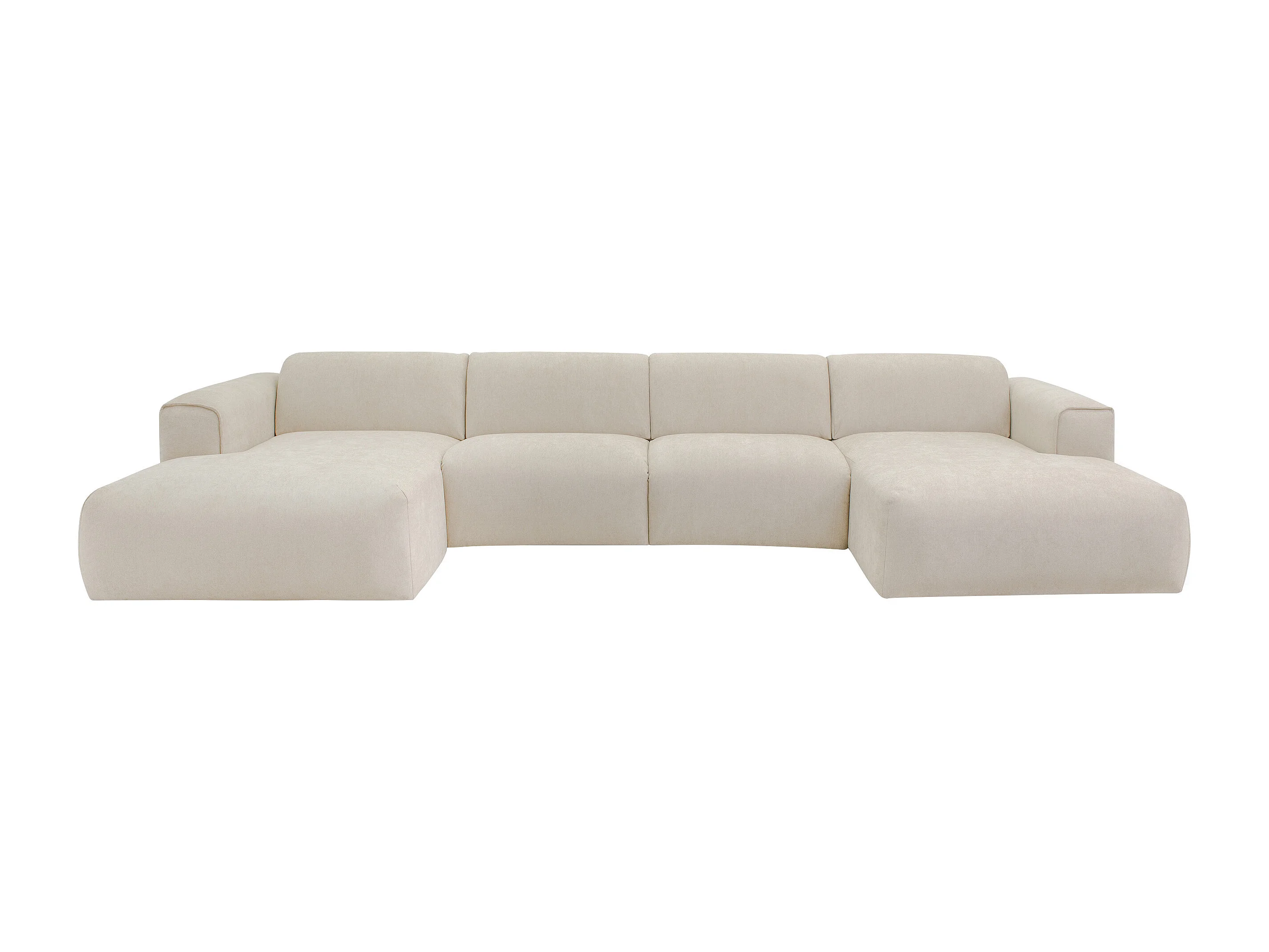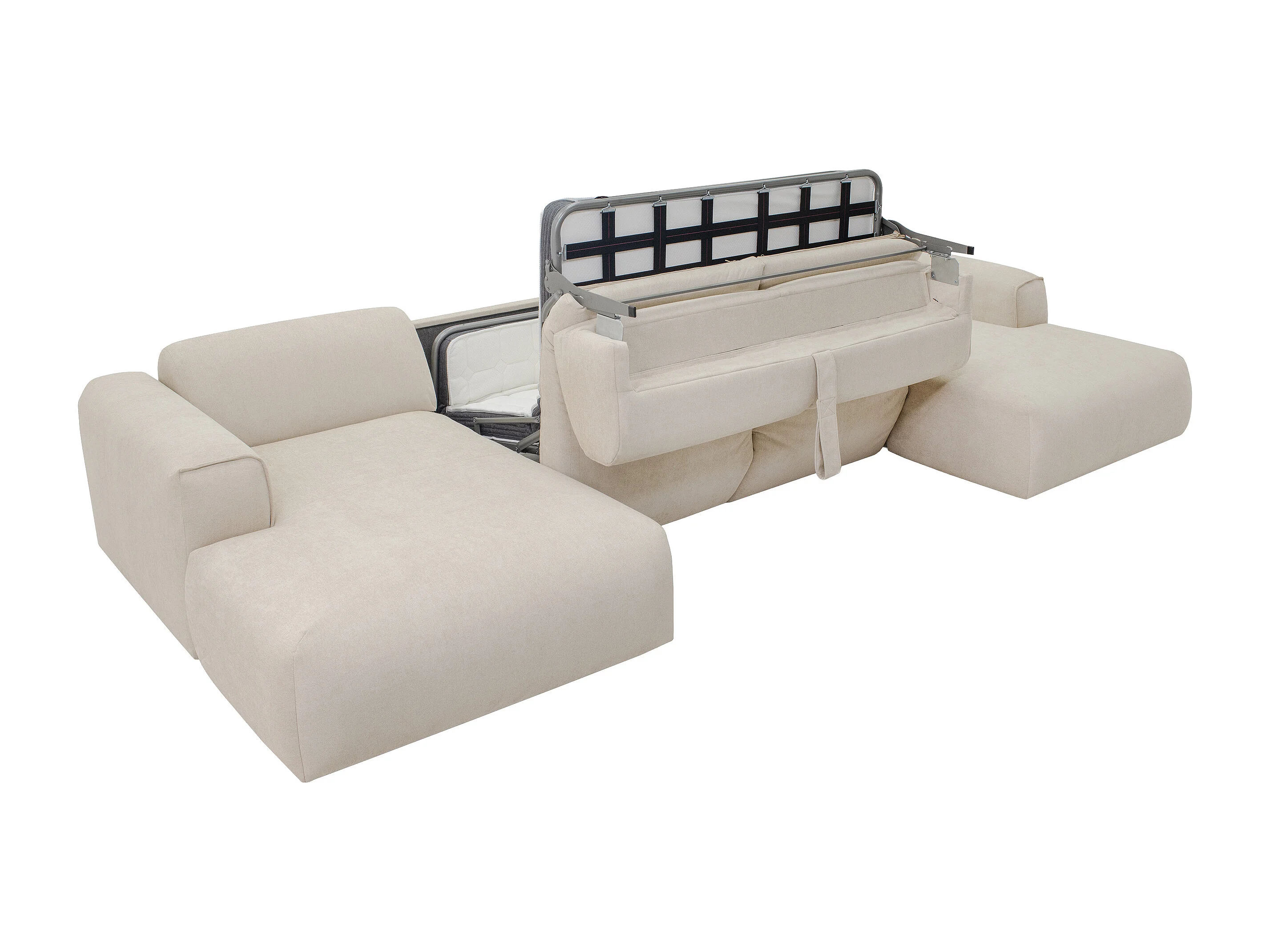Canapé d'angle panoramique convertible express en tissu beige - Couchage 140 cm - Matelas 13 cm mémoire de forme POGNI