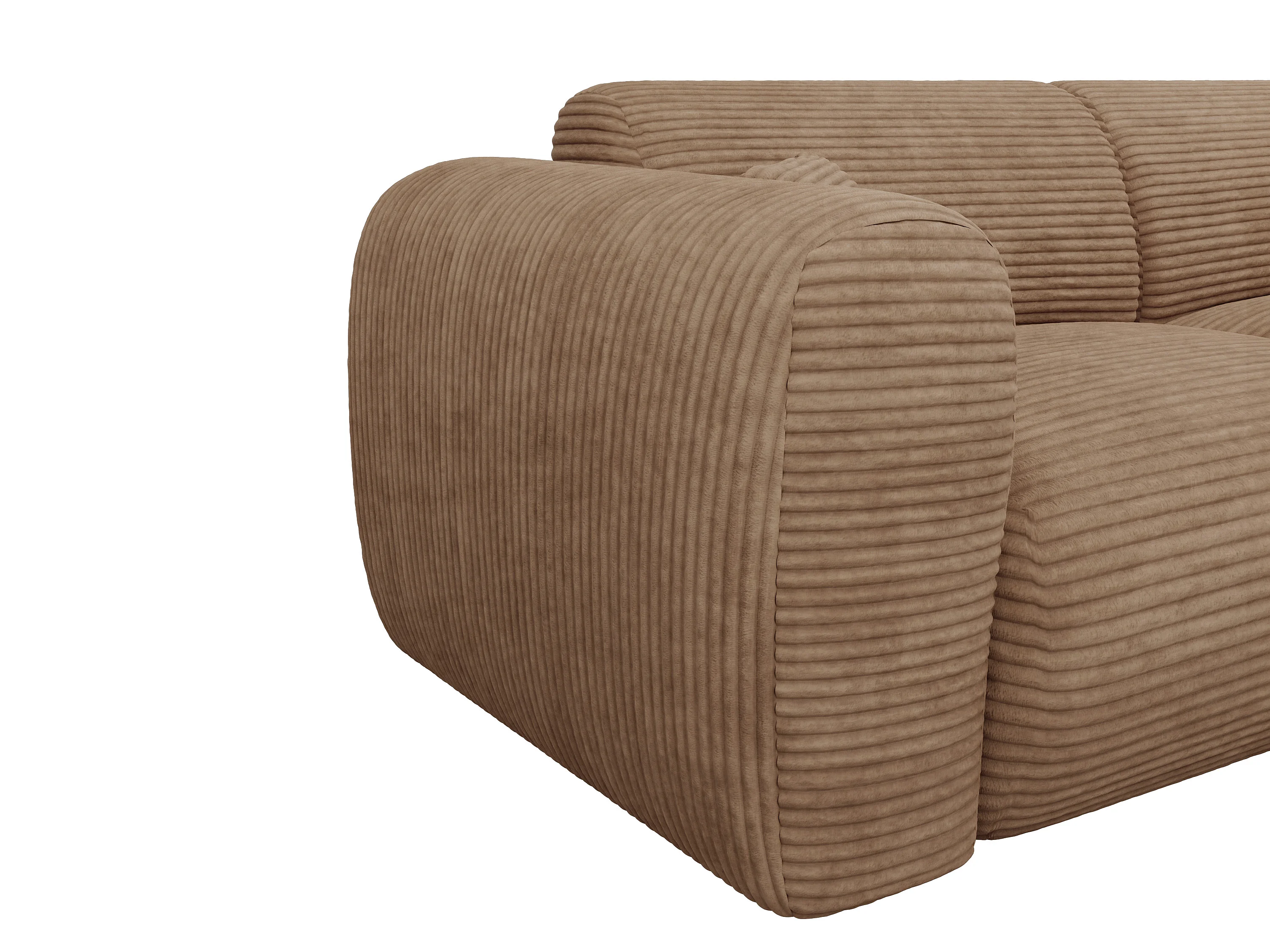 Grand canapé d'angle droit convertible express en velours côtelé taupe - Matelas 13 cm mémoire de forme POGNI