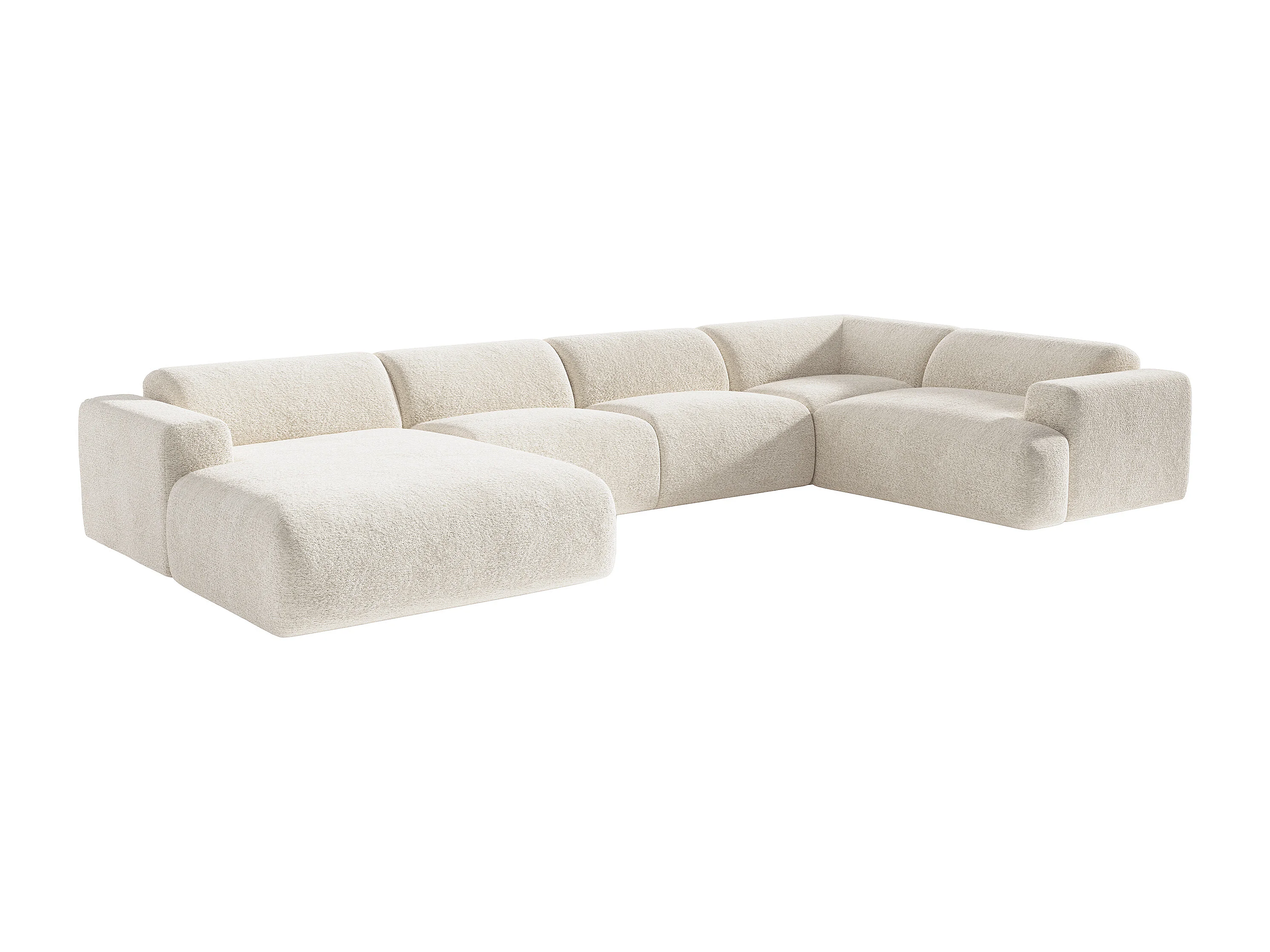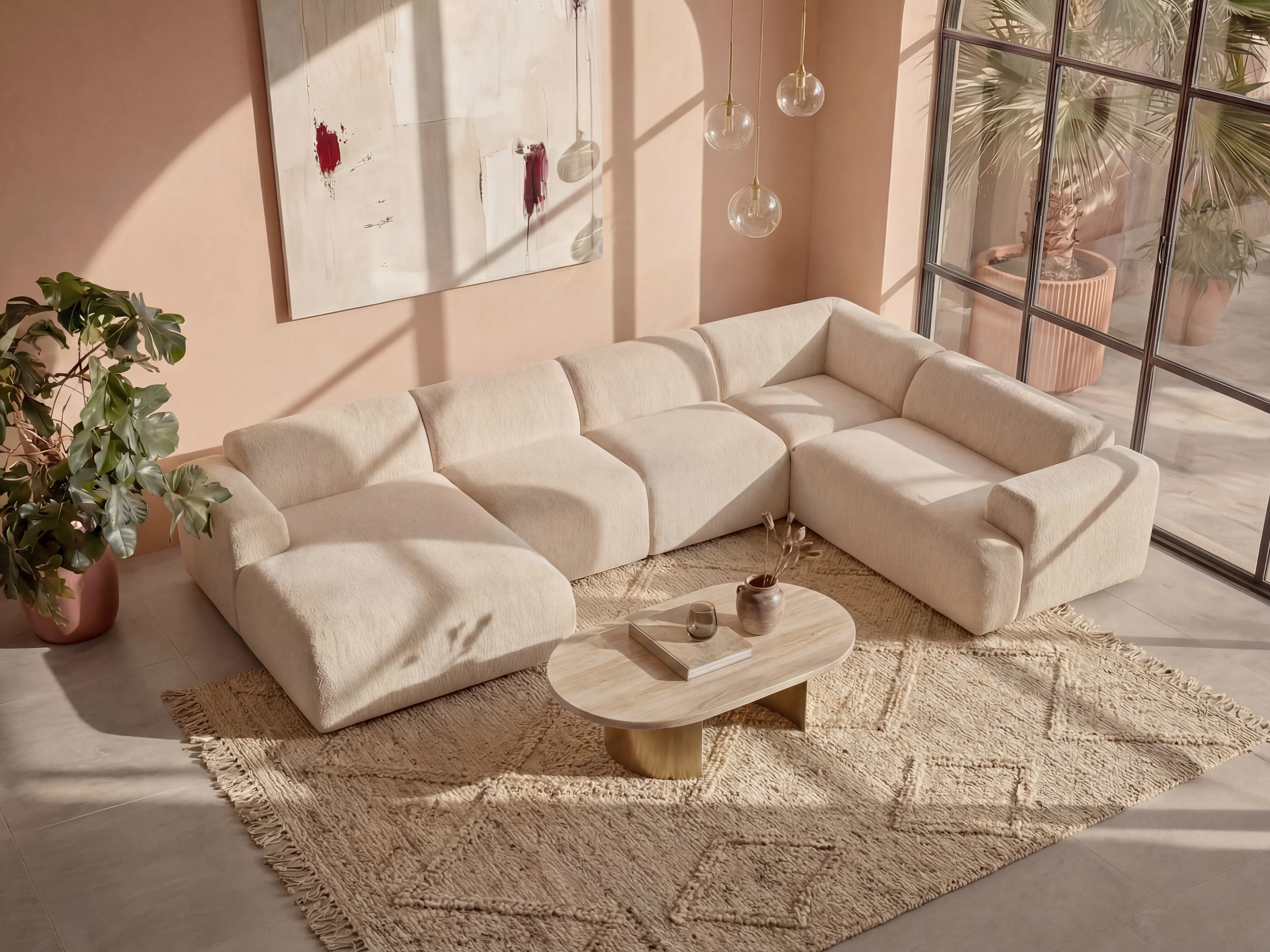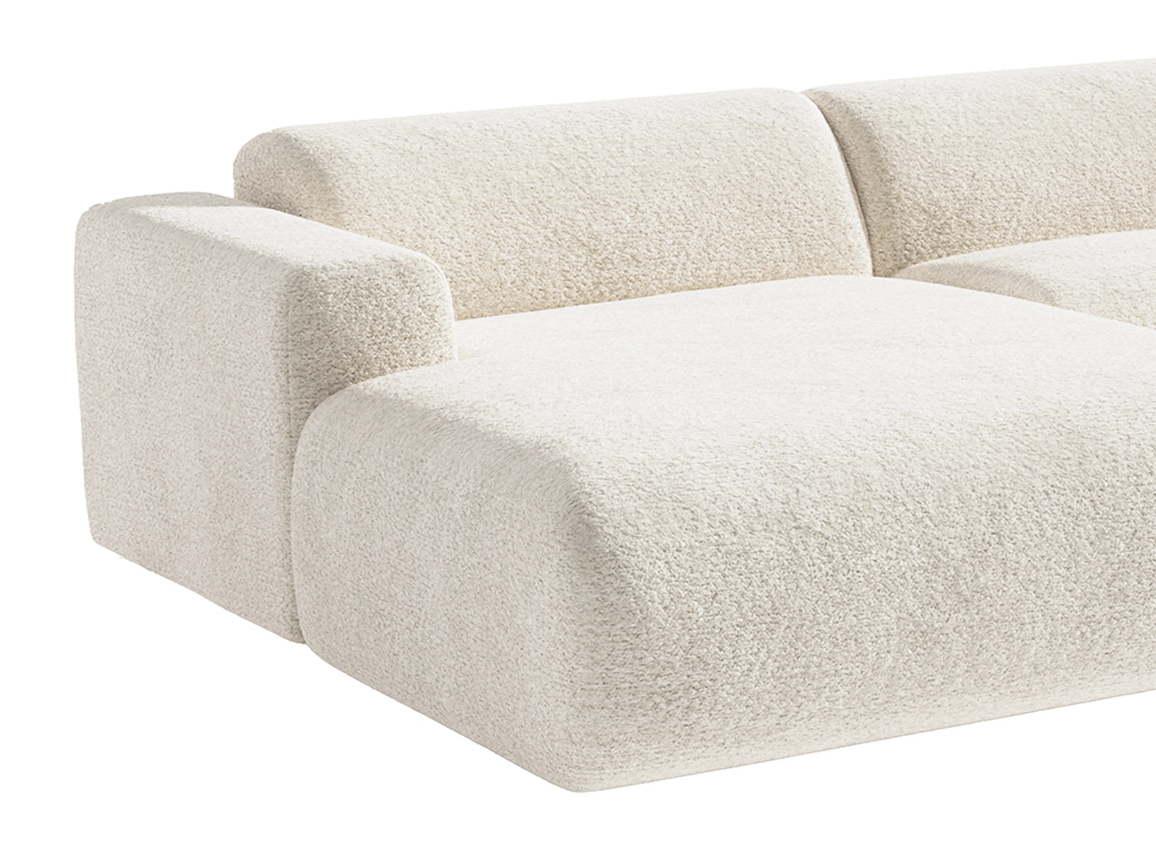 Grand canapé d'angle gauche panoramique en tissu bouclette blanc POGNI de Maison Céphy