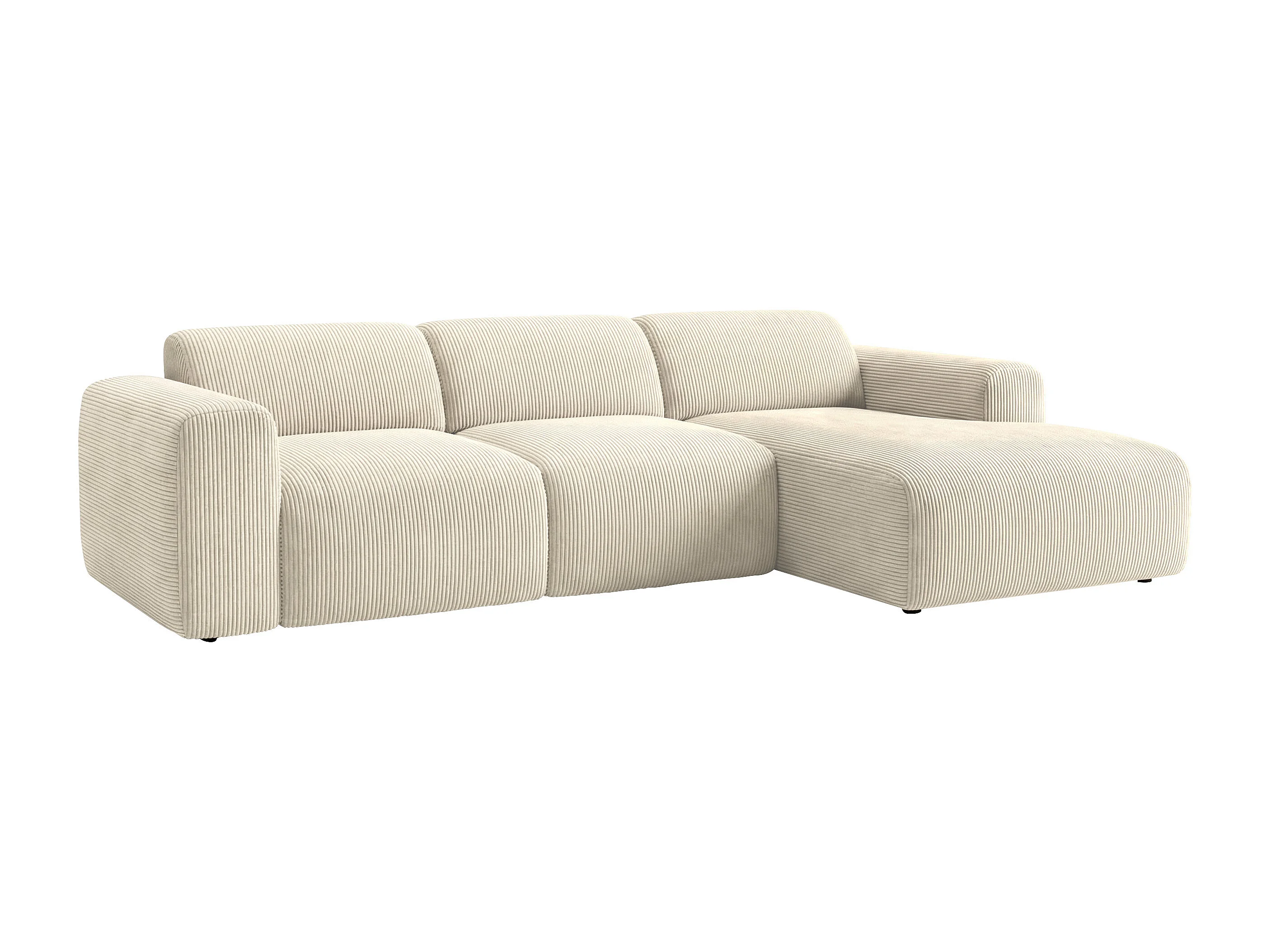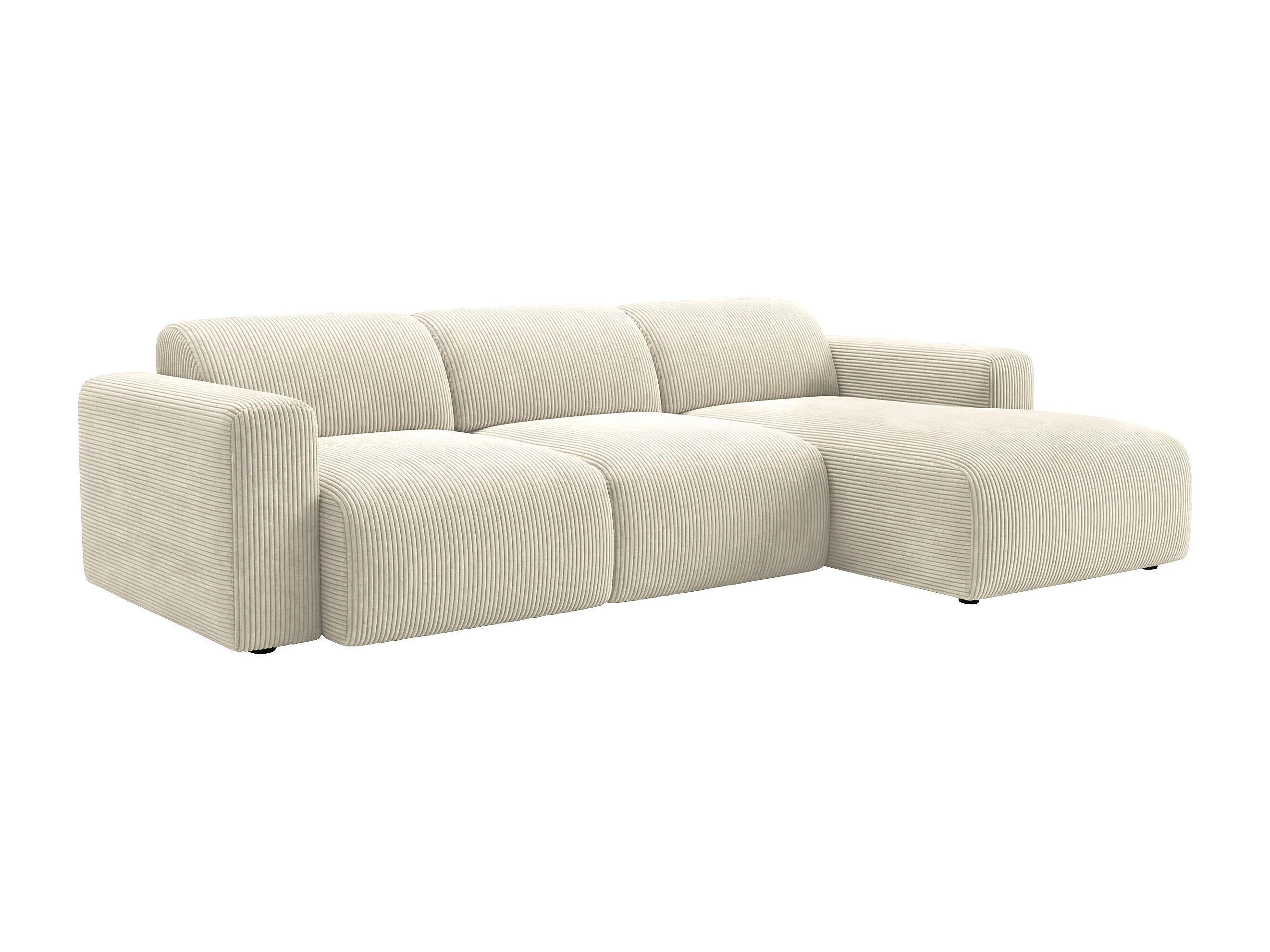 Grand canapé d'angle droit avec assise coulissante électrique en velours côtelé fines côtes beige POGNI de Maison Céphy