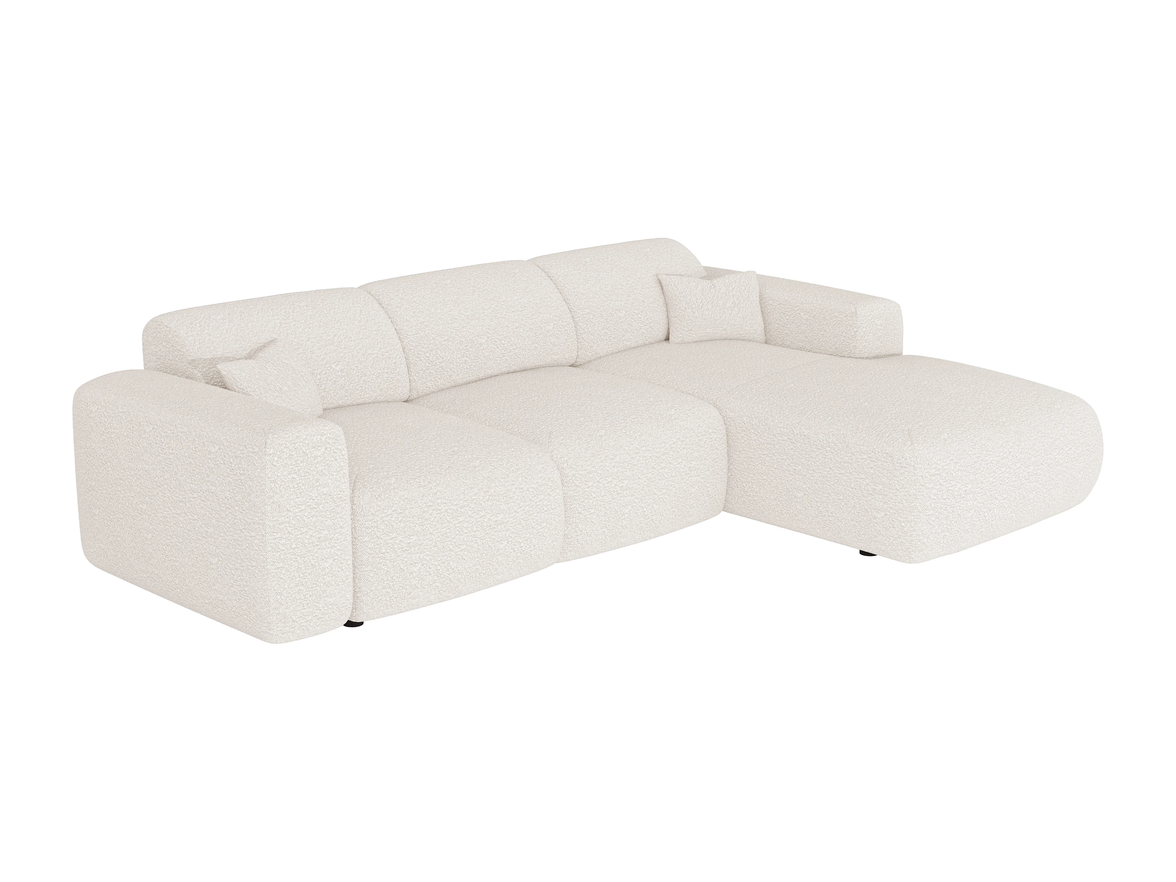 Grand canapé d'angle droit convertible en tissu bouclette blanc POGNI de Maison Céphy