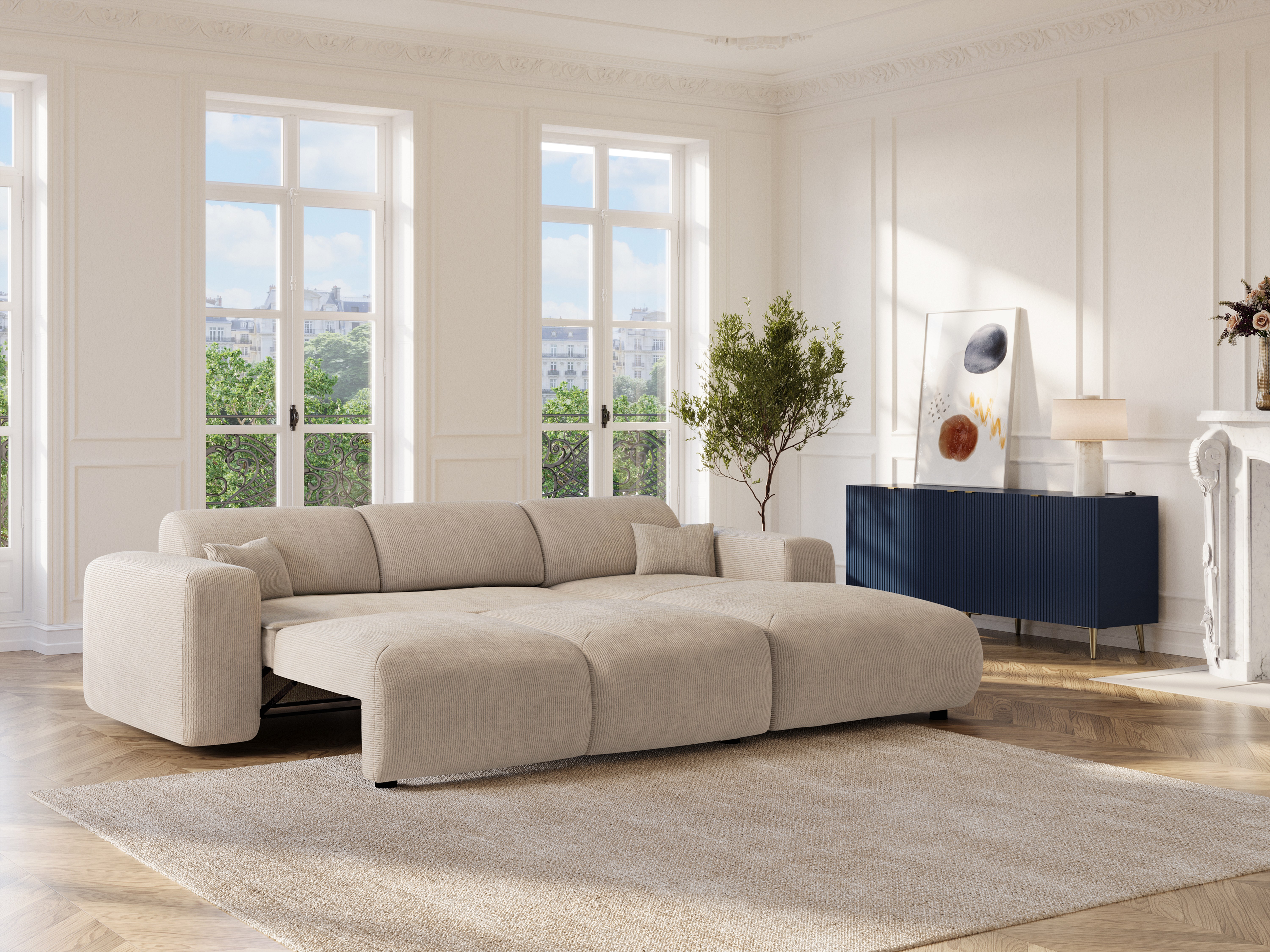 • De l’assise au couchage avec fluidité : Le mécanisme convertible tiroir transforme le canapé en lit en toute simplicité.