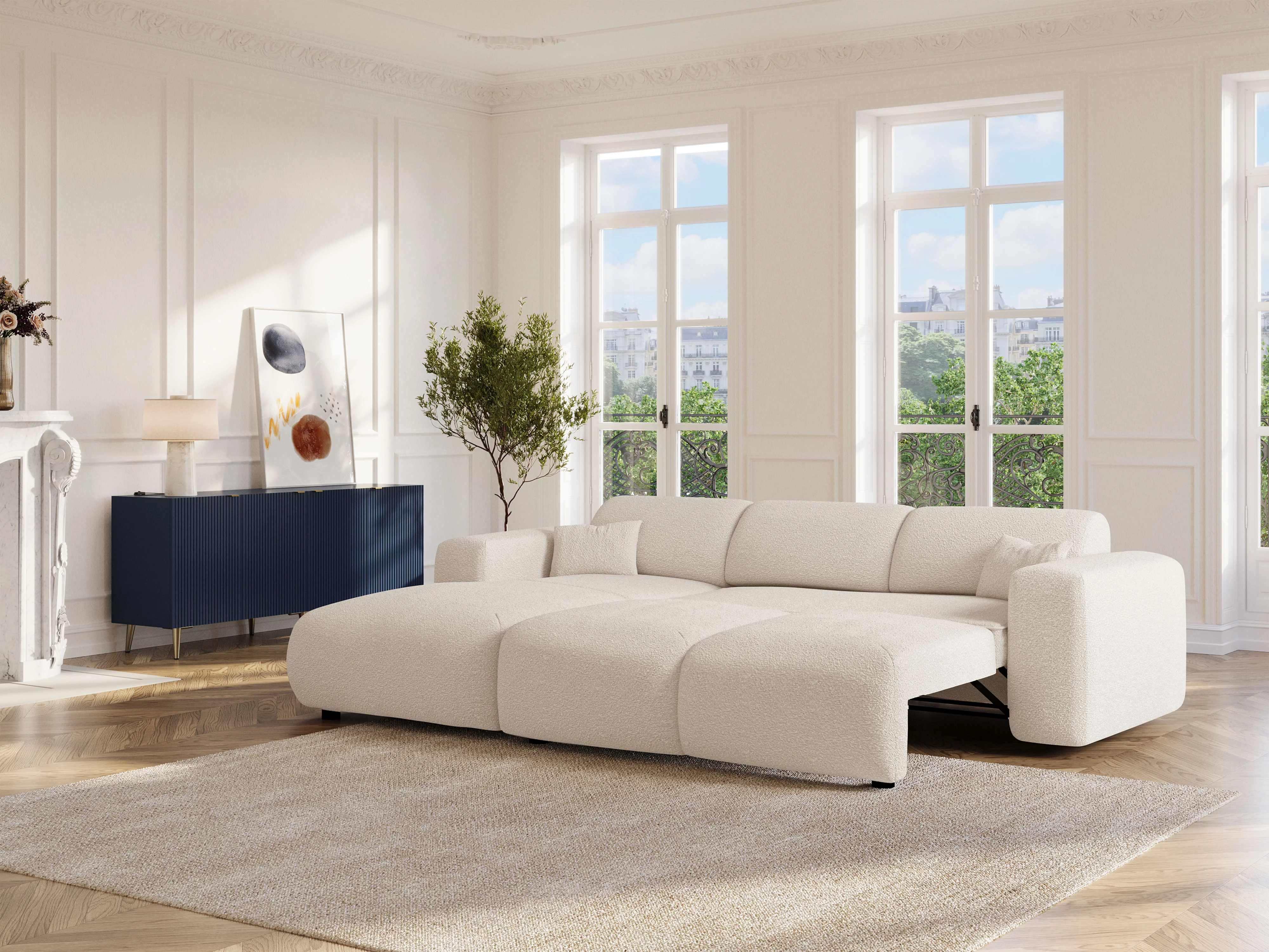 • De l’assise au couchage avec fluidité : Le mécanisme convertible tiroir transforme le canapé en lit en toute simplicité.