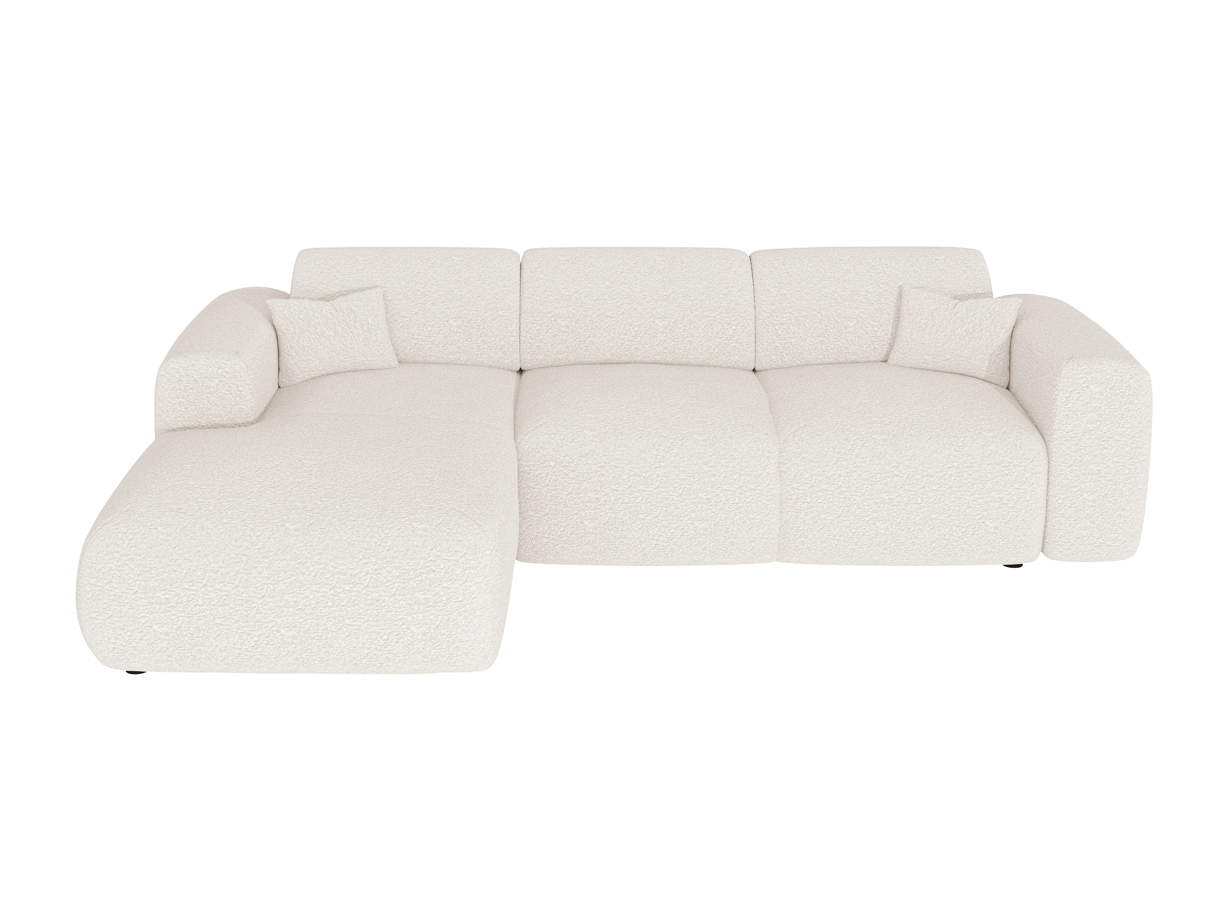 Grand canapé d'angle gauche convertible en tissu bouclette blanc POGNI de Maison Céphy