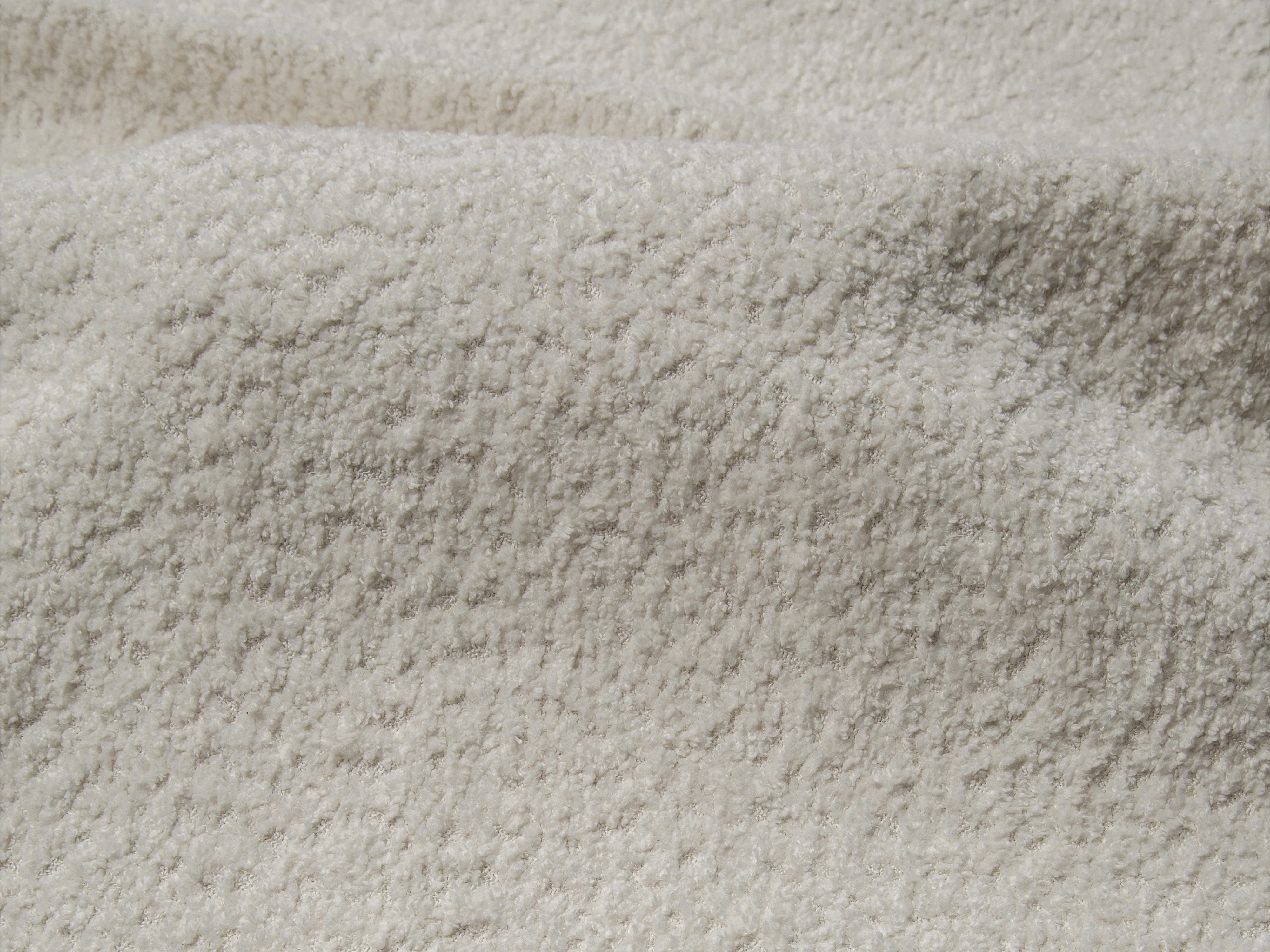 • Un toucher réconfortant : Le tissu bouclette évoque chaleur et cocooning dans un esprit contemporain.