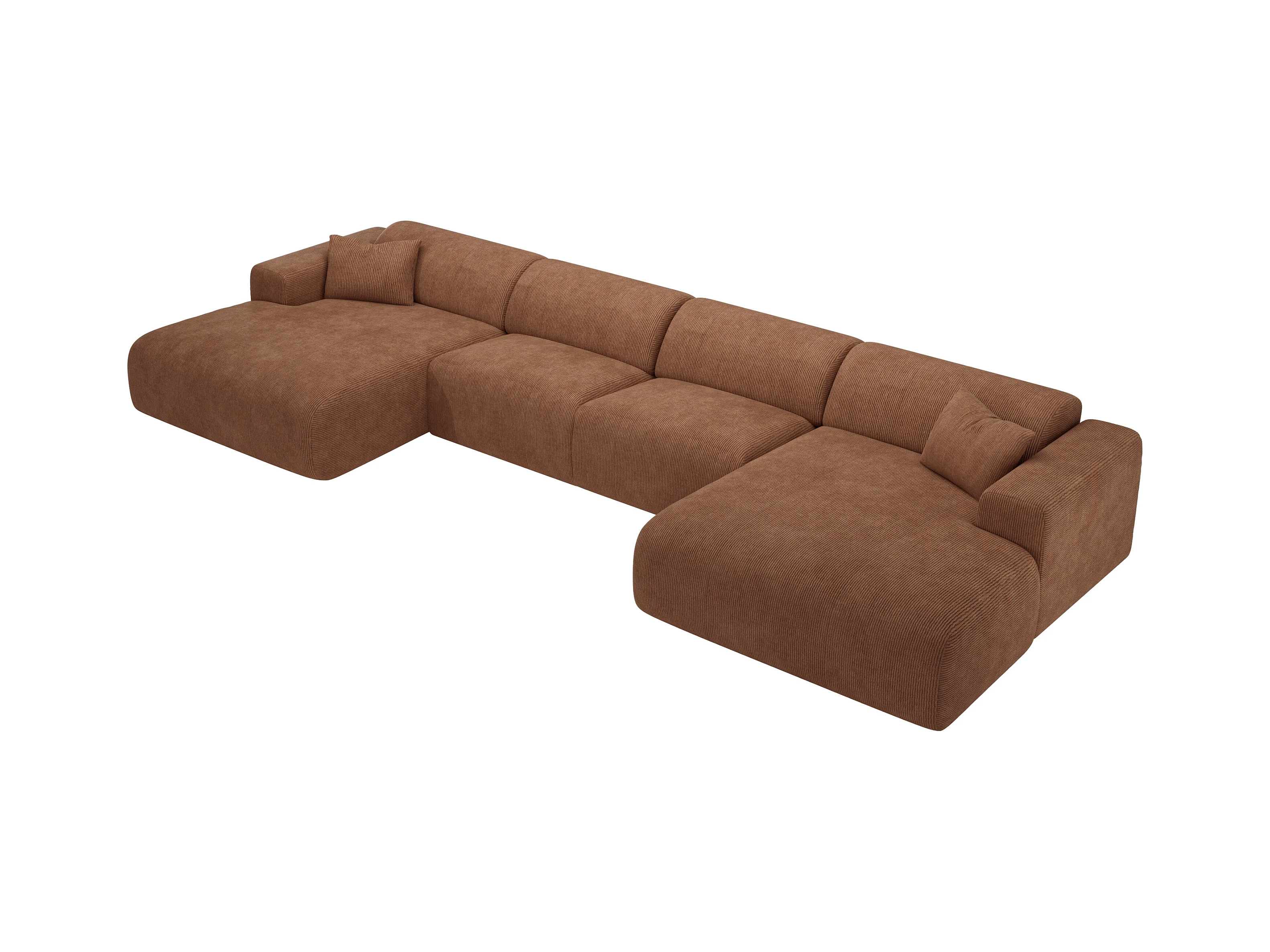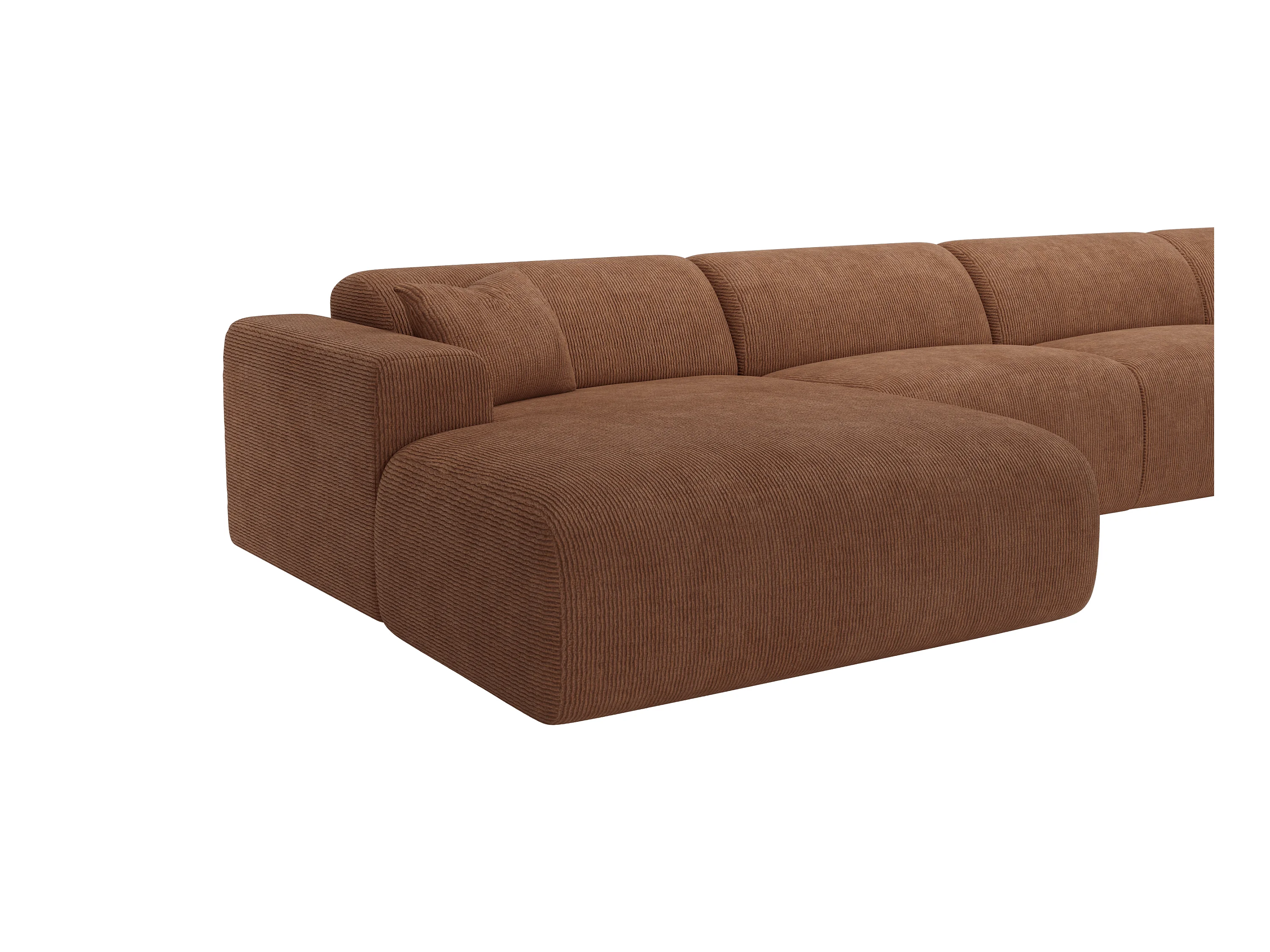 Grand Canapé d'angle panoramique en velours côtelé fines côtes terracotta POGNI de Maison Céphy