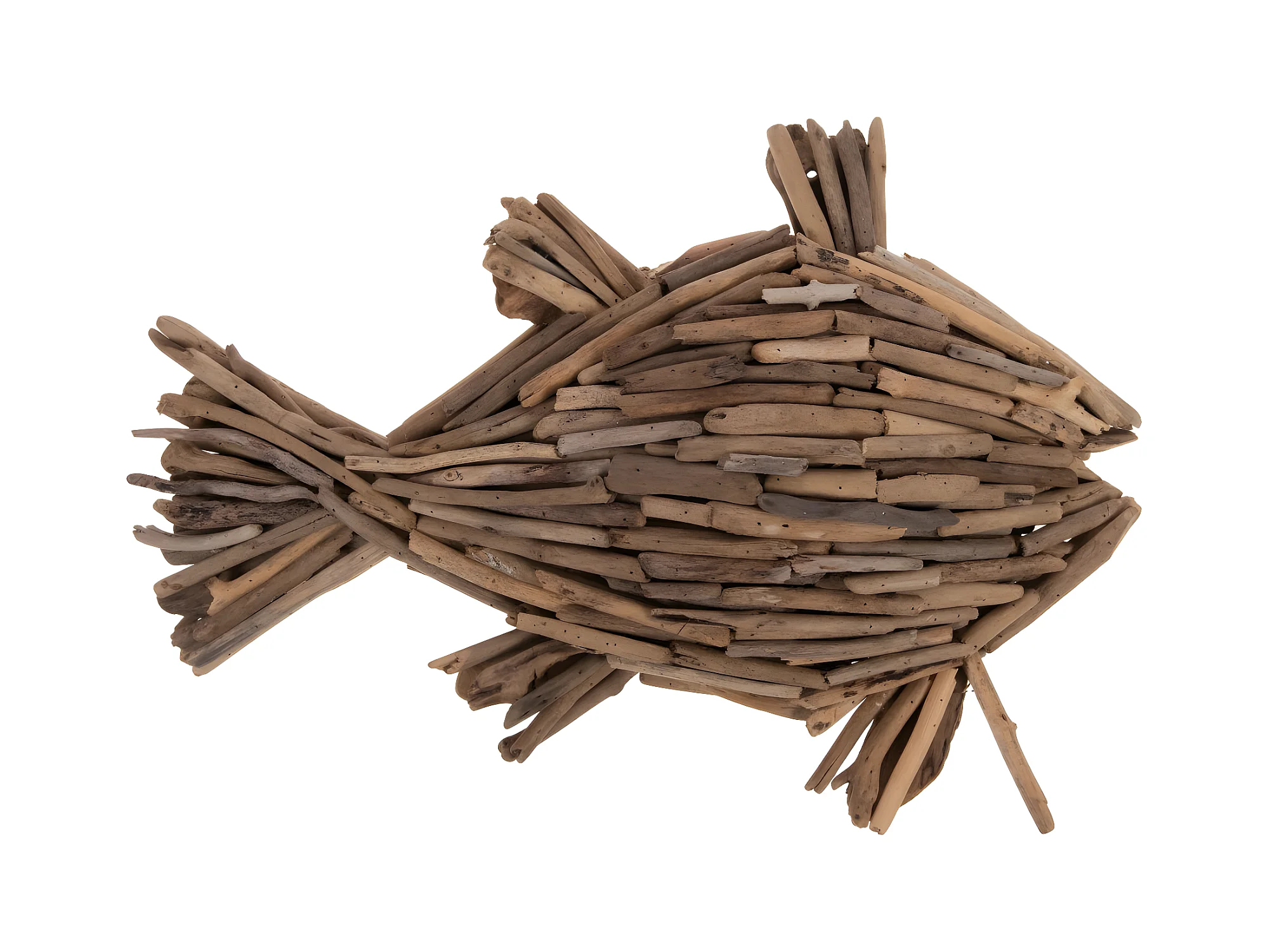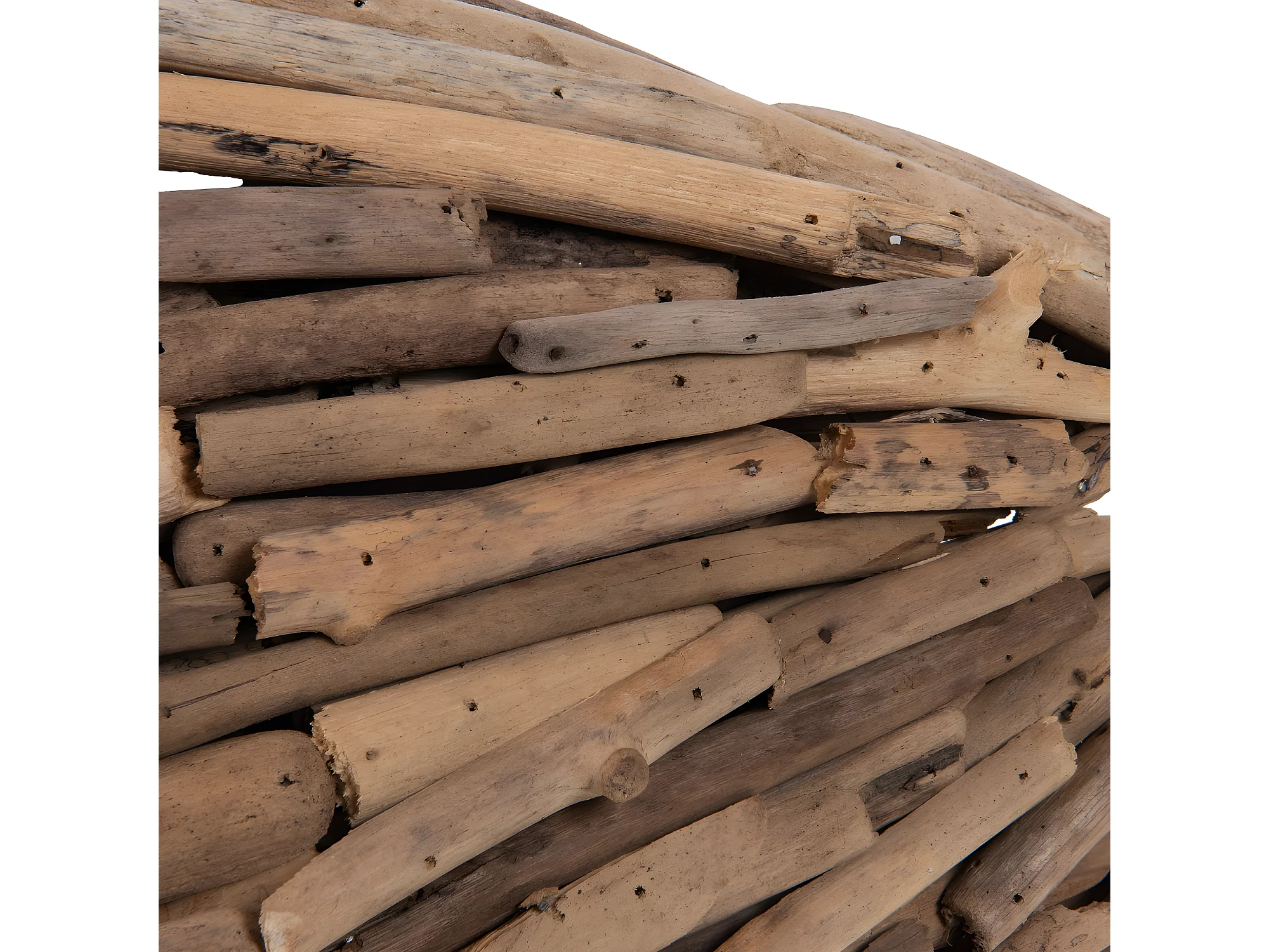 Sculpture ronde en bois de teck flotté sur socle H 120 cm - WOODY
