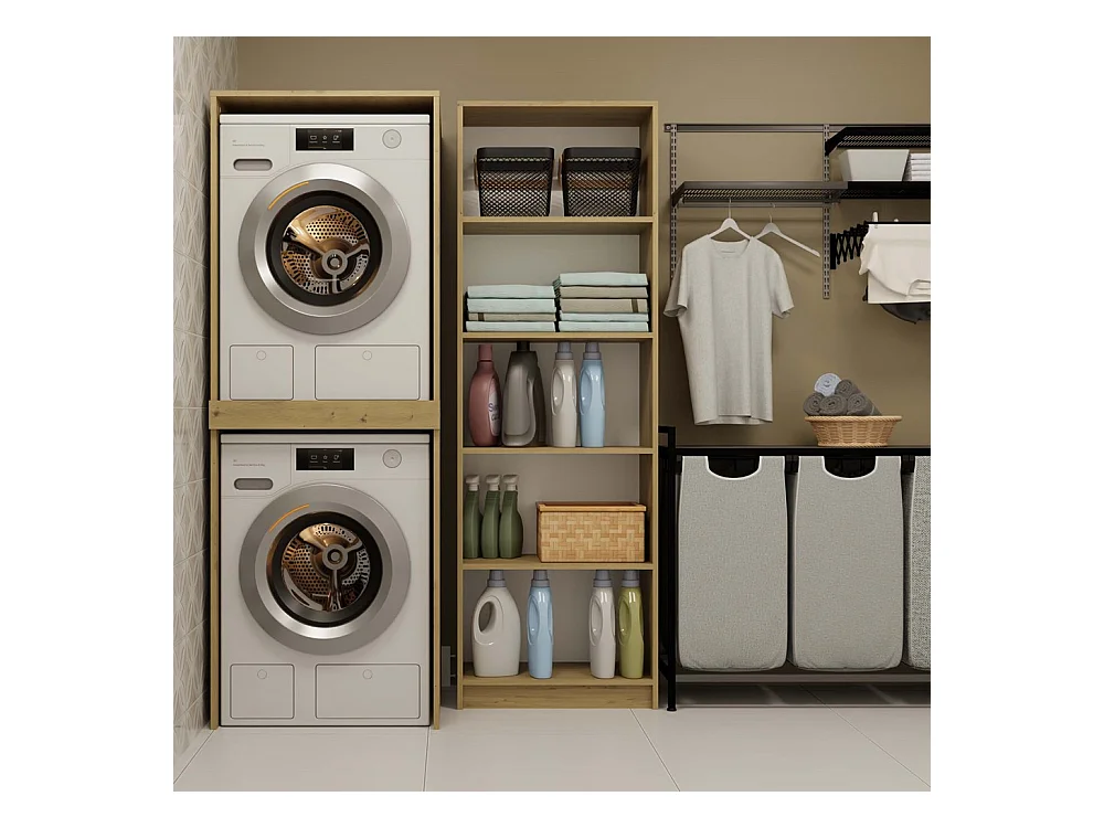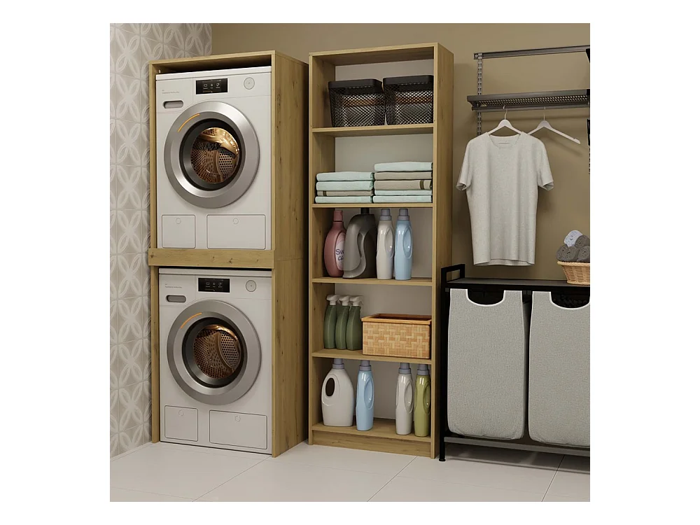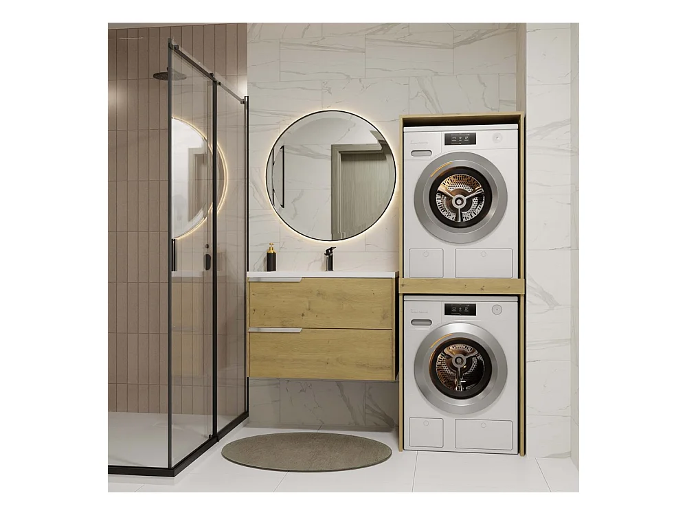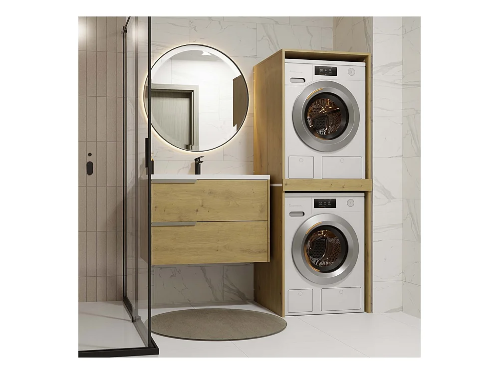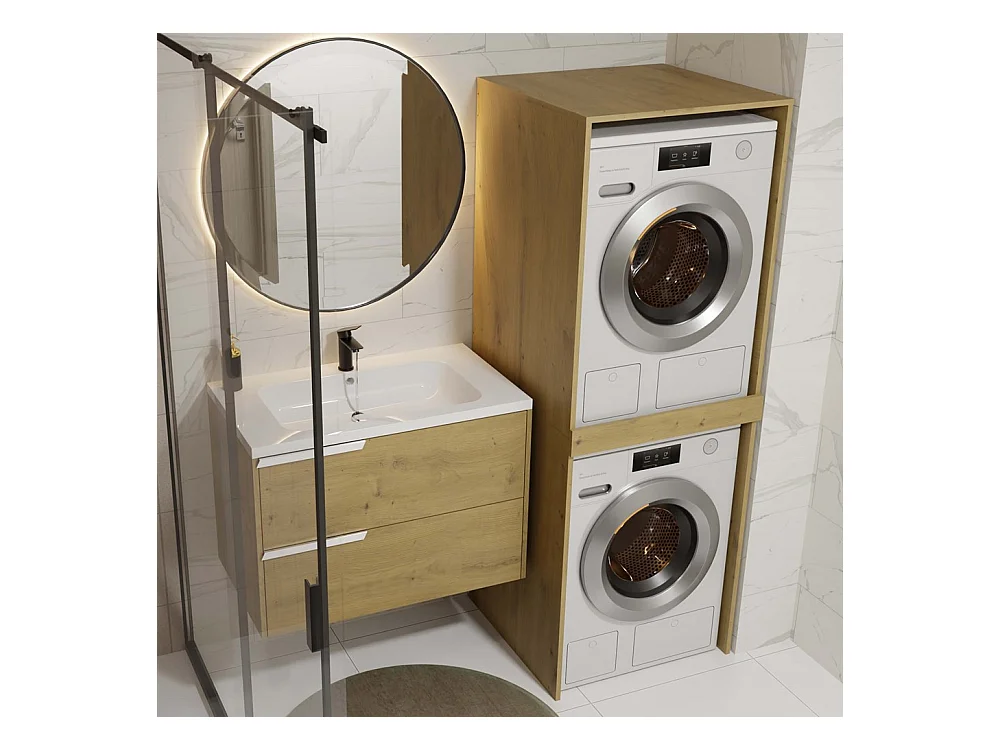 POLA TWIN - Armoire de salle de bain pour lave-linge et sèche-linge avec colonne étagère - Chêne