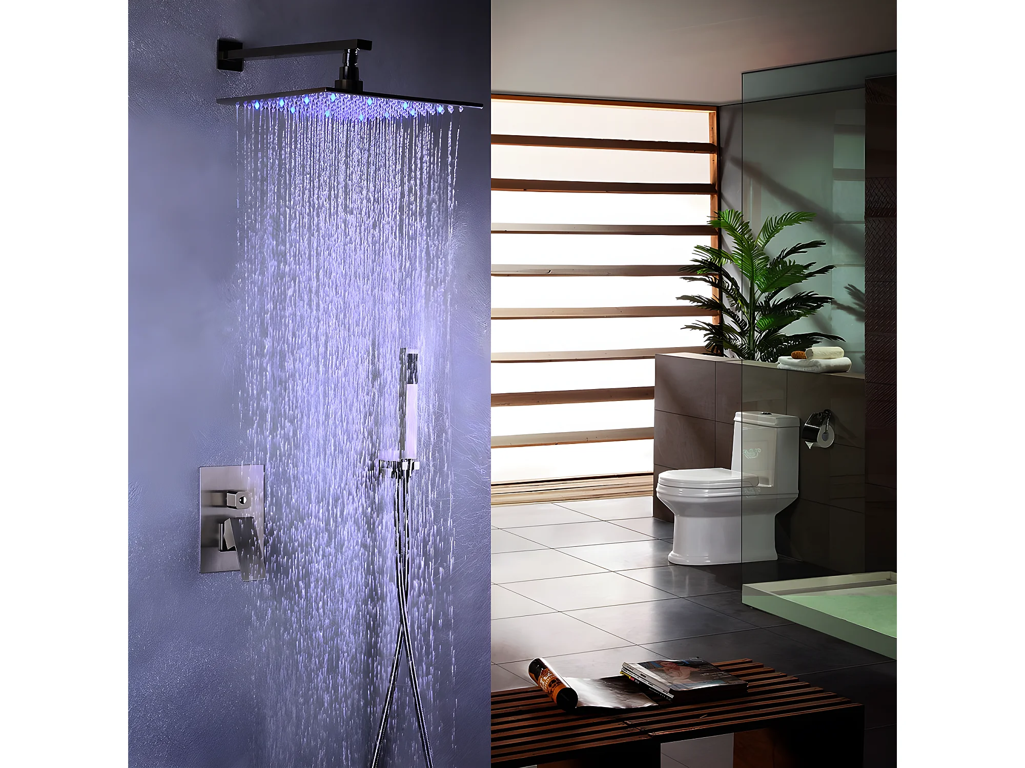 Pomme de douche LED en acier inoxydable et système de douche à main en nickel brossé Avec LED 250 mm