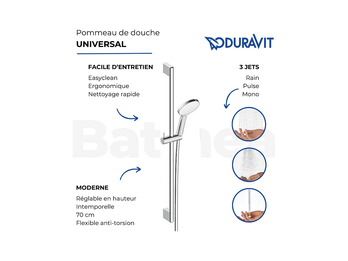 Pommeau de douche DURAVIT 3 jets type massage flexible et barre noir mat