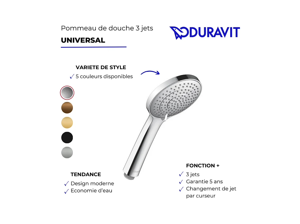Pommeau de douche DURAVIT Universal 11 cm 3 jets noir mat
