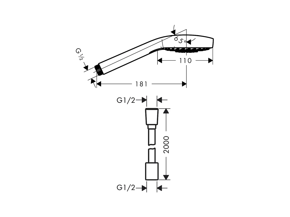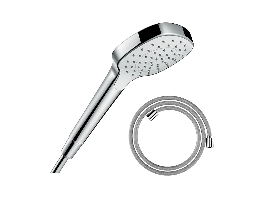 Pommeau de douche HANSGROHE Crometta EcoSmart blanc/chromé + flexible de douche HANSGROHE Designflex 200 cm chromé
