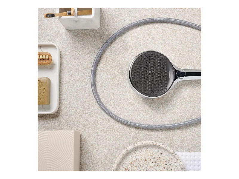 Pommeau de douche HANSGROHE Pulsify E 100 EcoSmart blanc mat + flexible de douche HANSGROHE Designflex 125 cm blanc mat