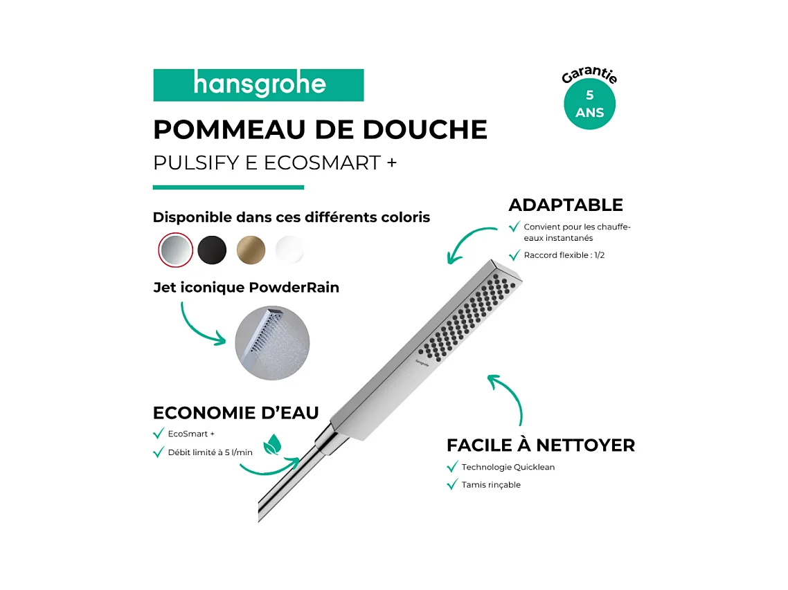 Pommeau de douche HANSGROHE Pulsify E 100 EcoSmart chromé