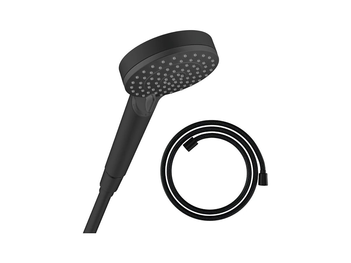 Pommeau de douche HANSGROHE Vernis Blend 100 EcoSmart Vario noir mat + flexible de douche HANSGROHE Designflex 125 cm noir mat