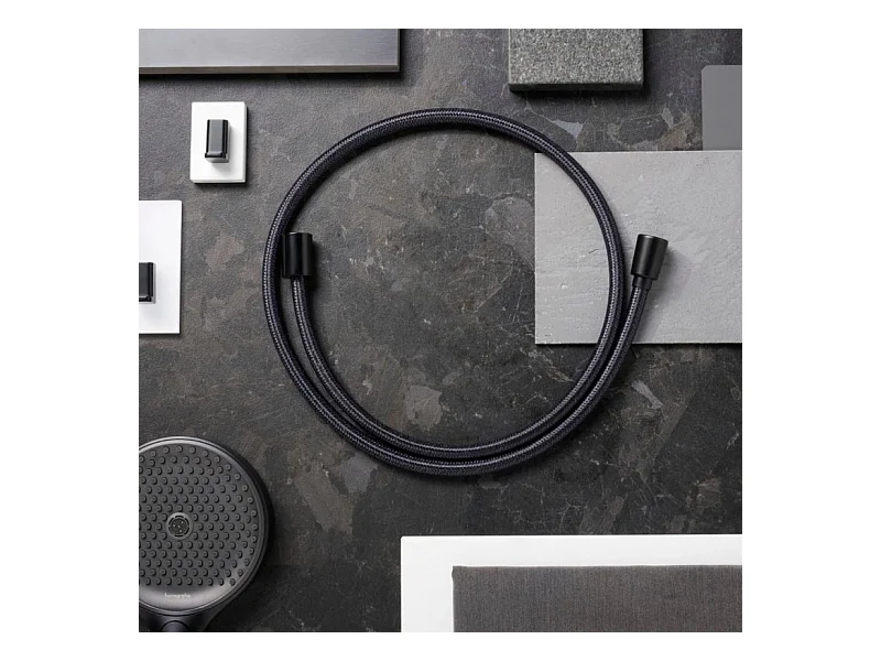 Pommeau de douche HANSGROHE Pulsify E 100 EcoSmart noir mat + flexible de douche HANSGROHE Designflex 125 cm noir mat