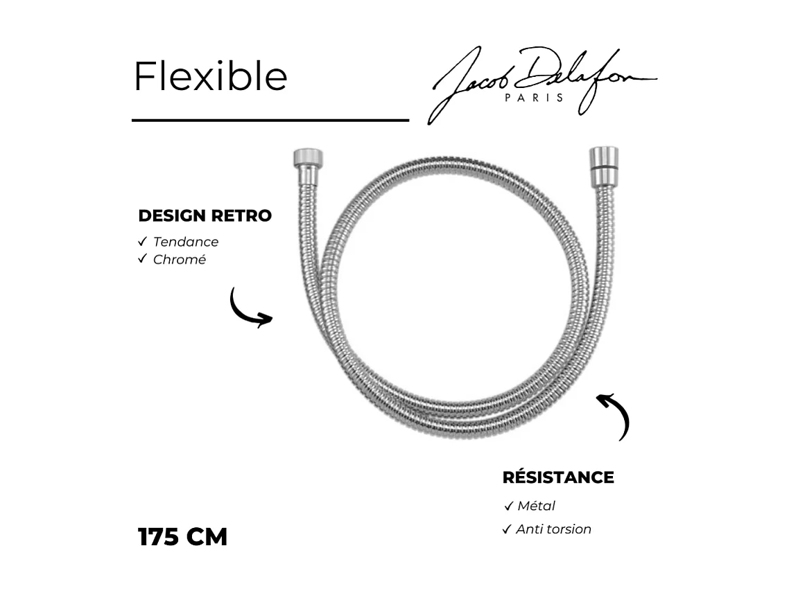 Pommeau de douche JACOB DELAFON Shift+ rond 2 jets chromé + flexible 175 cm métal