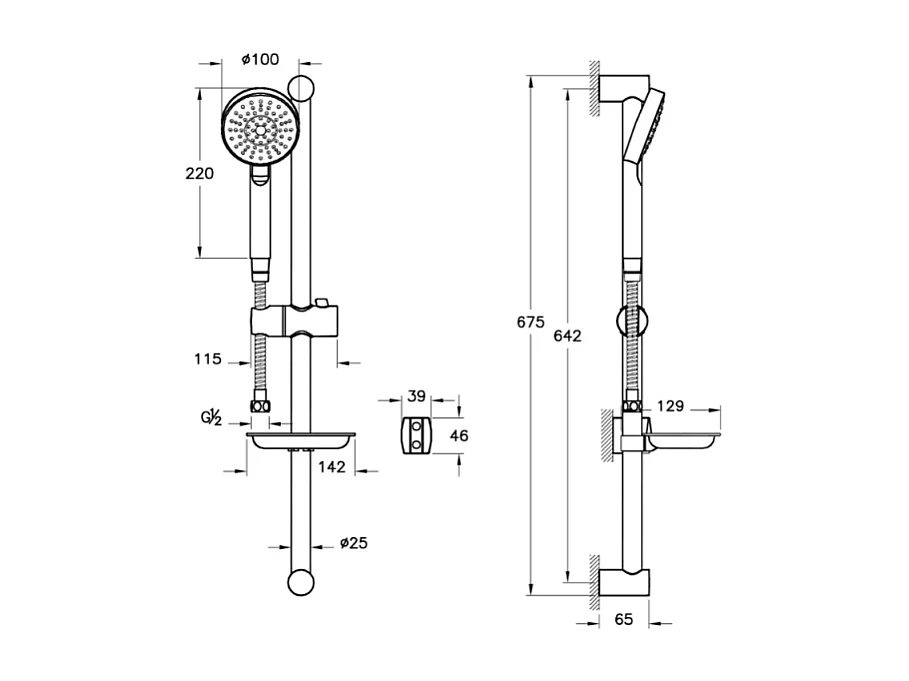 Pommeau de douche VITRA Master avec barre, porte savon et flexible + nettoyant Briochin