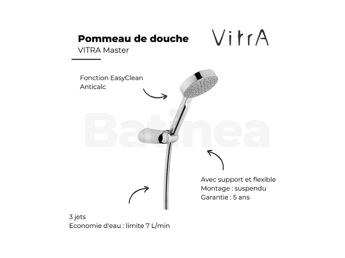 Pommeau de douche VITRA Master avec support et flexible + nettoyant Briochin