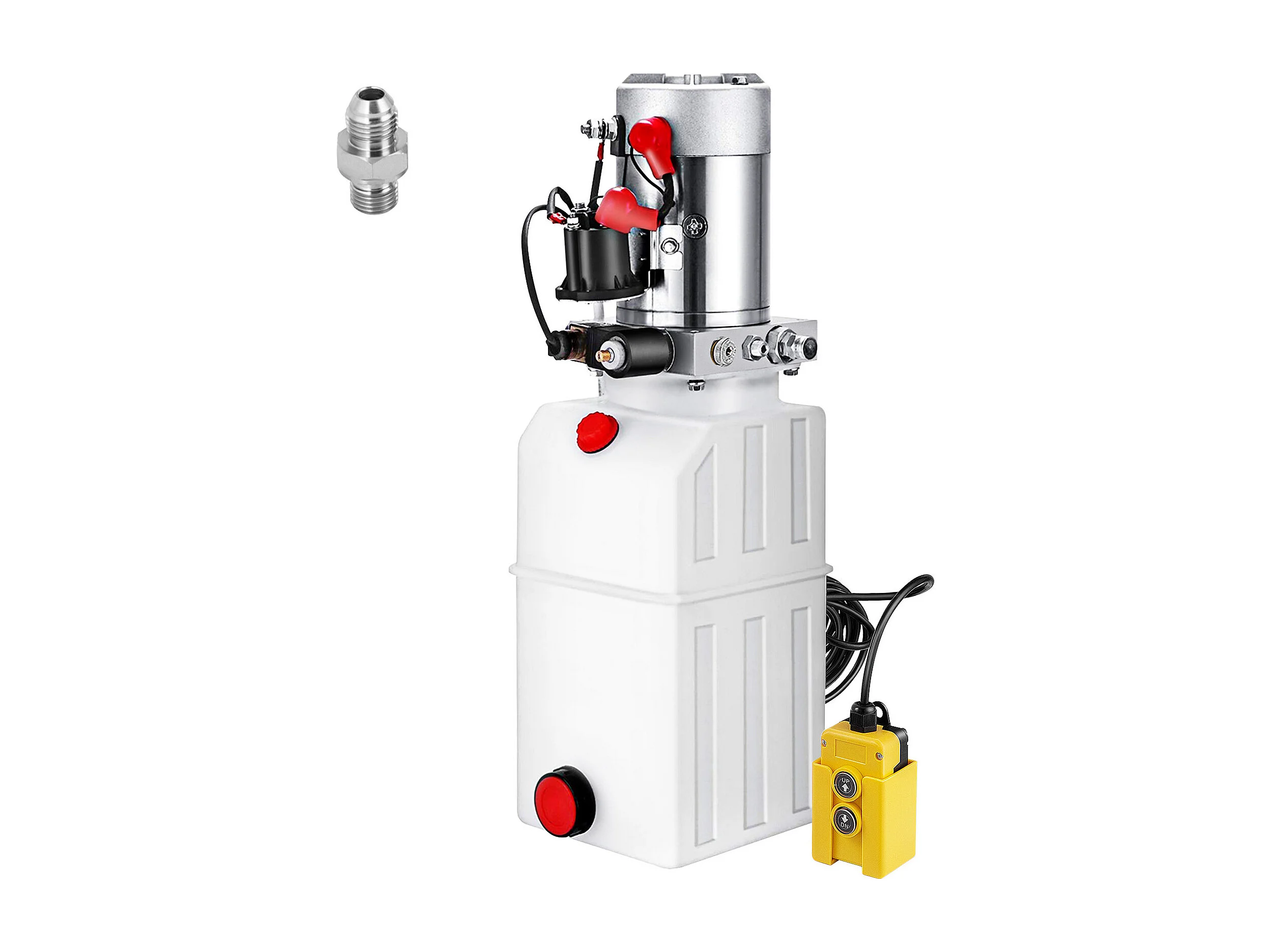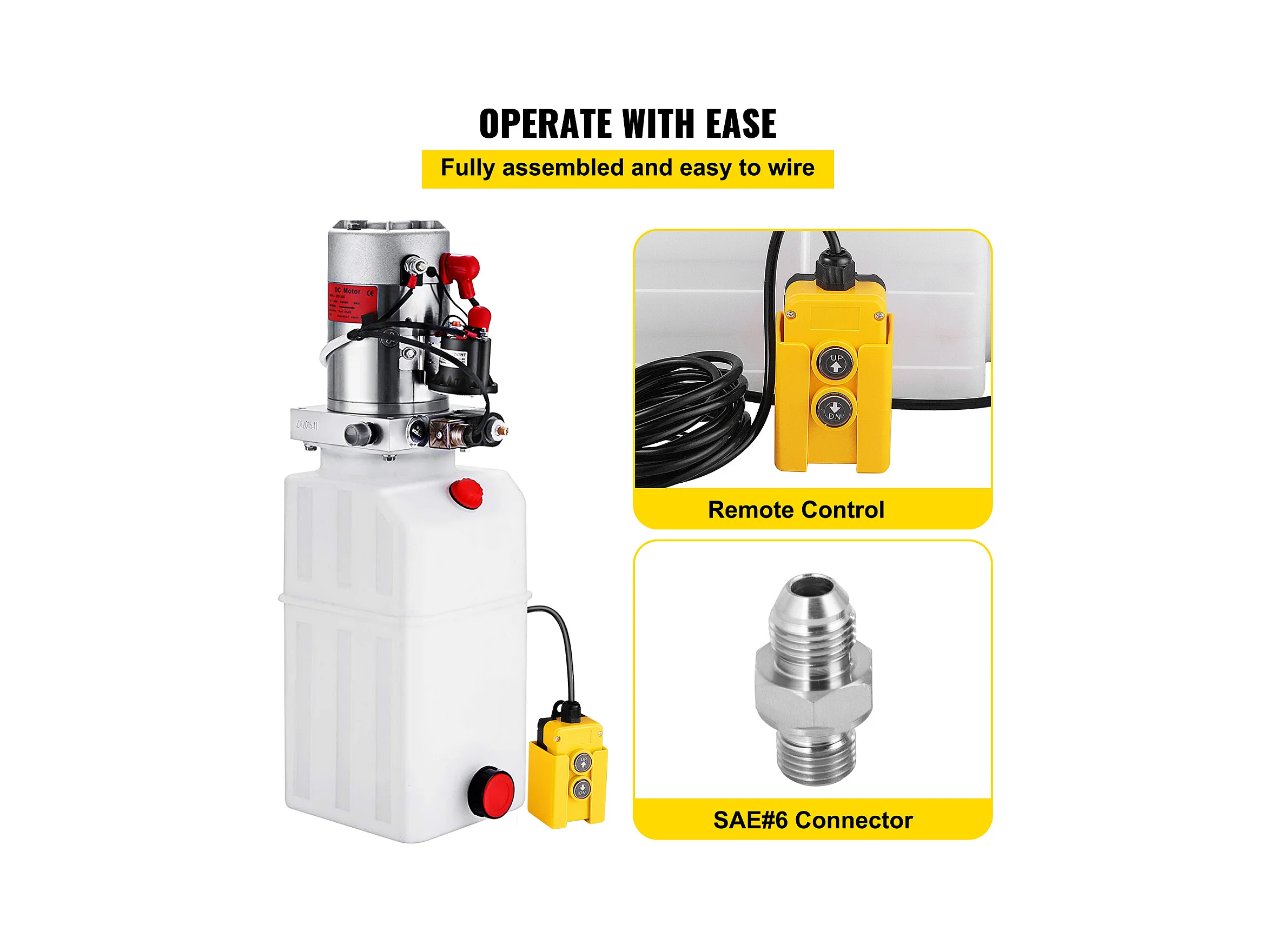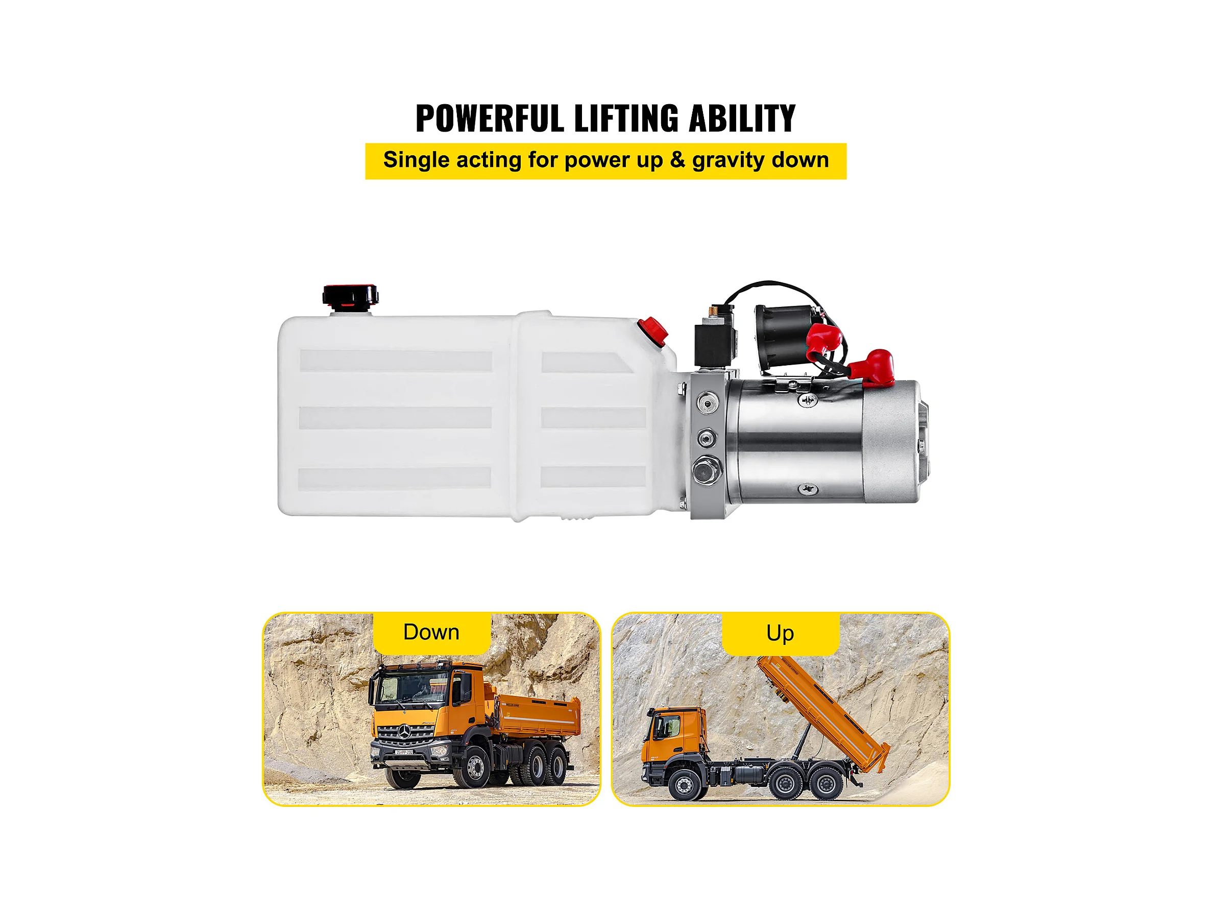 Pompe Hydraulique SucceBuy Pompe Hydraulique Électrique 6.6L Simple Effet Réservoir en Métal pour Remorque à Benne Basculante