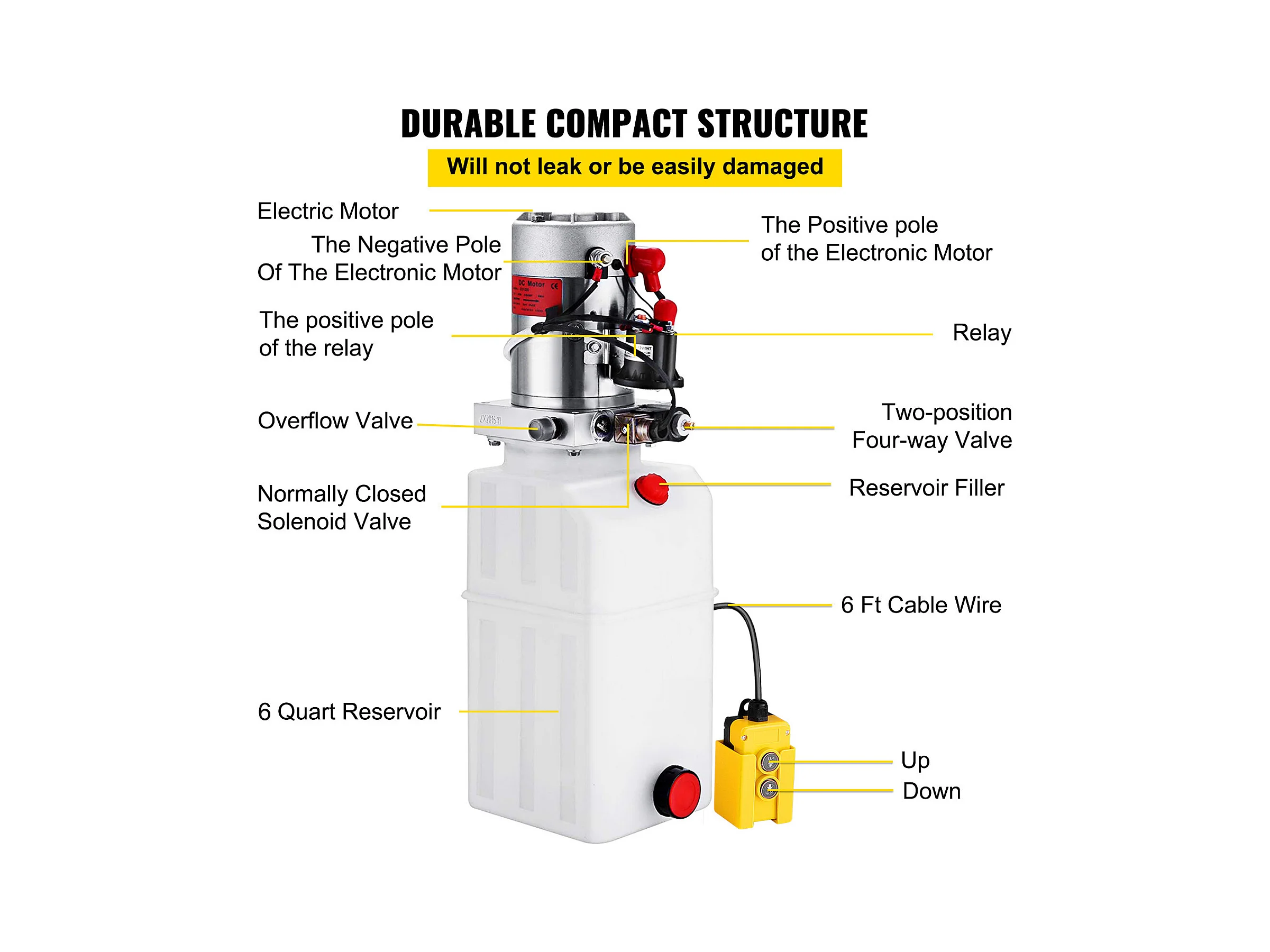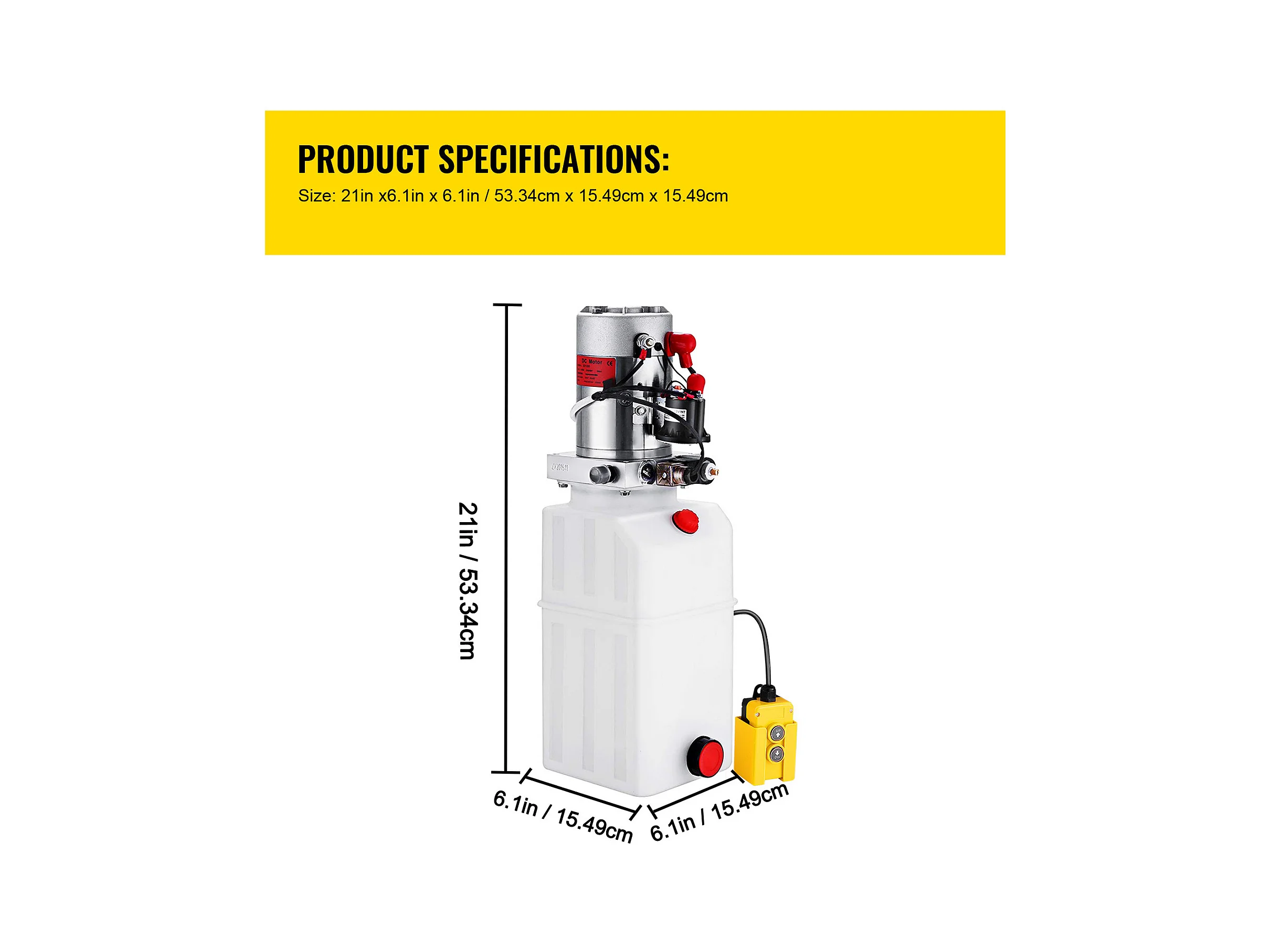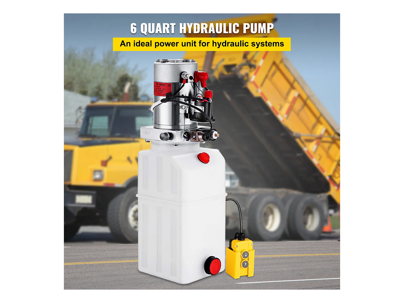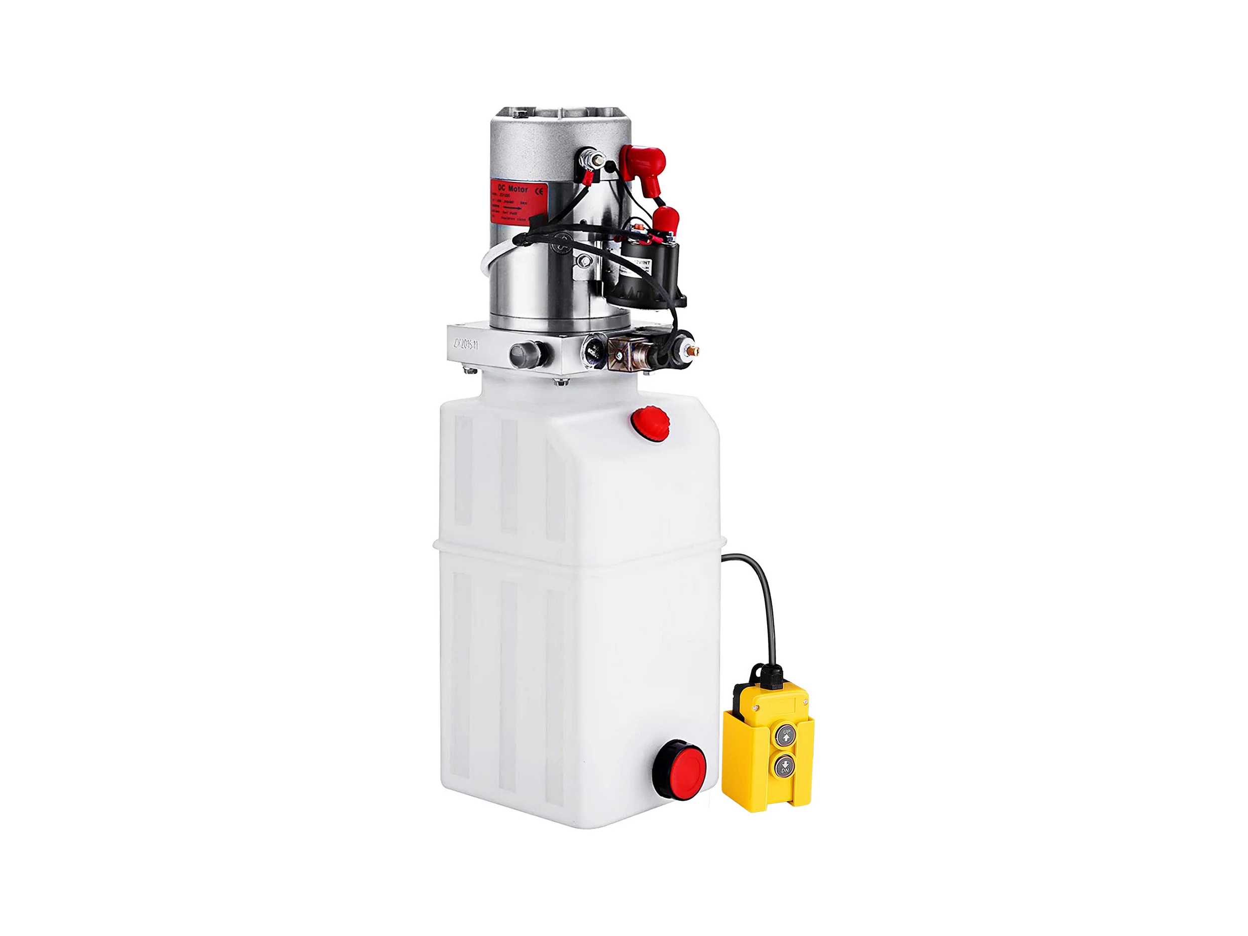 Pompe Hydraulique SucceBuy Pompe Hydraulique Électrique 6.6L Simple Effet Réservoir en Métal pour Remorque à Benne Basculante