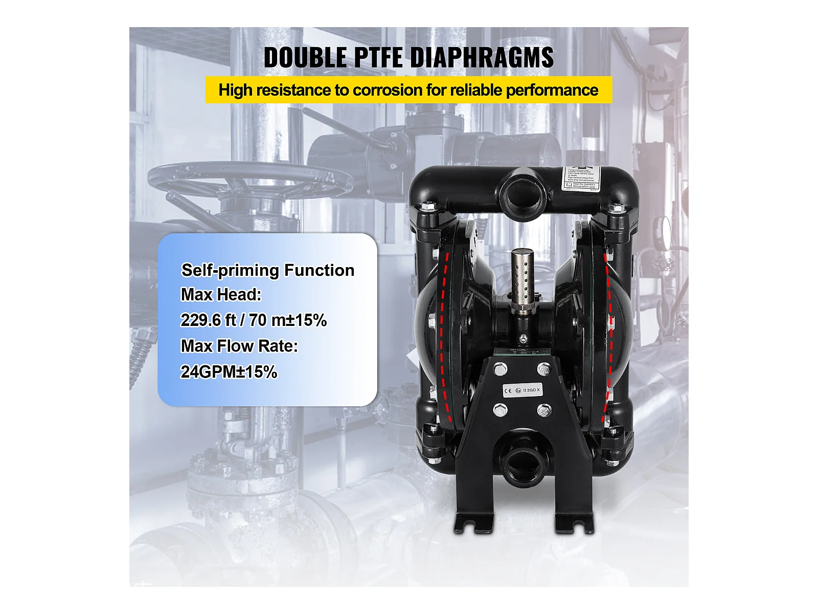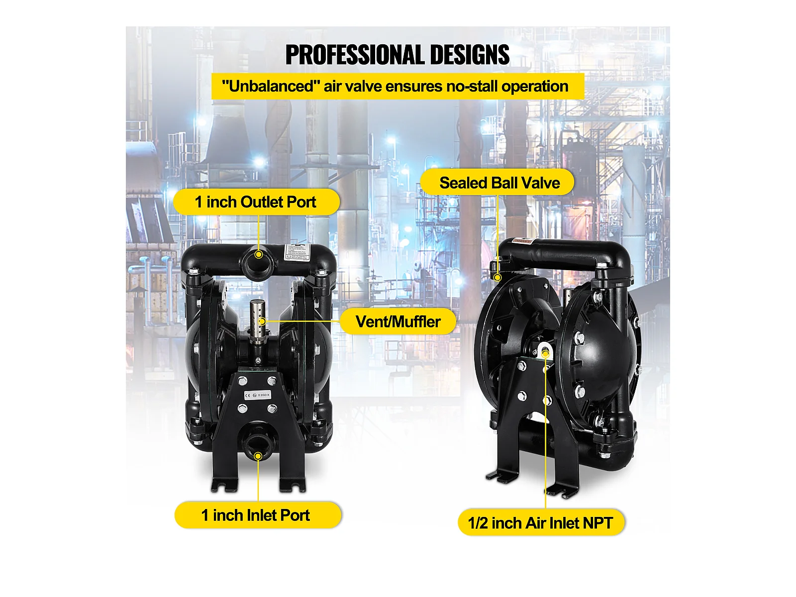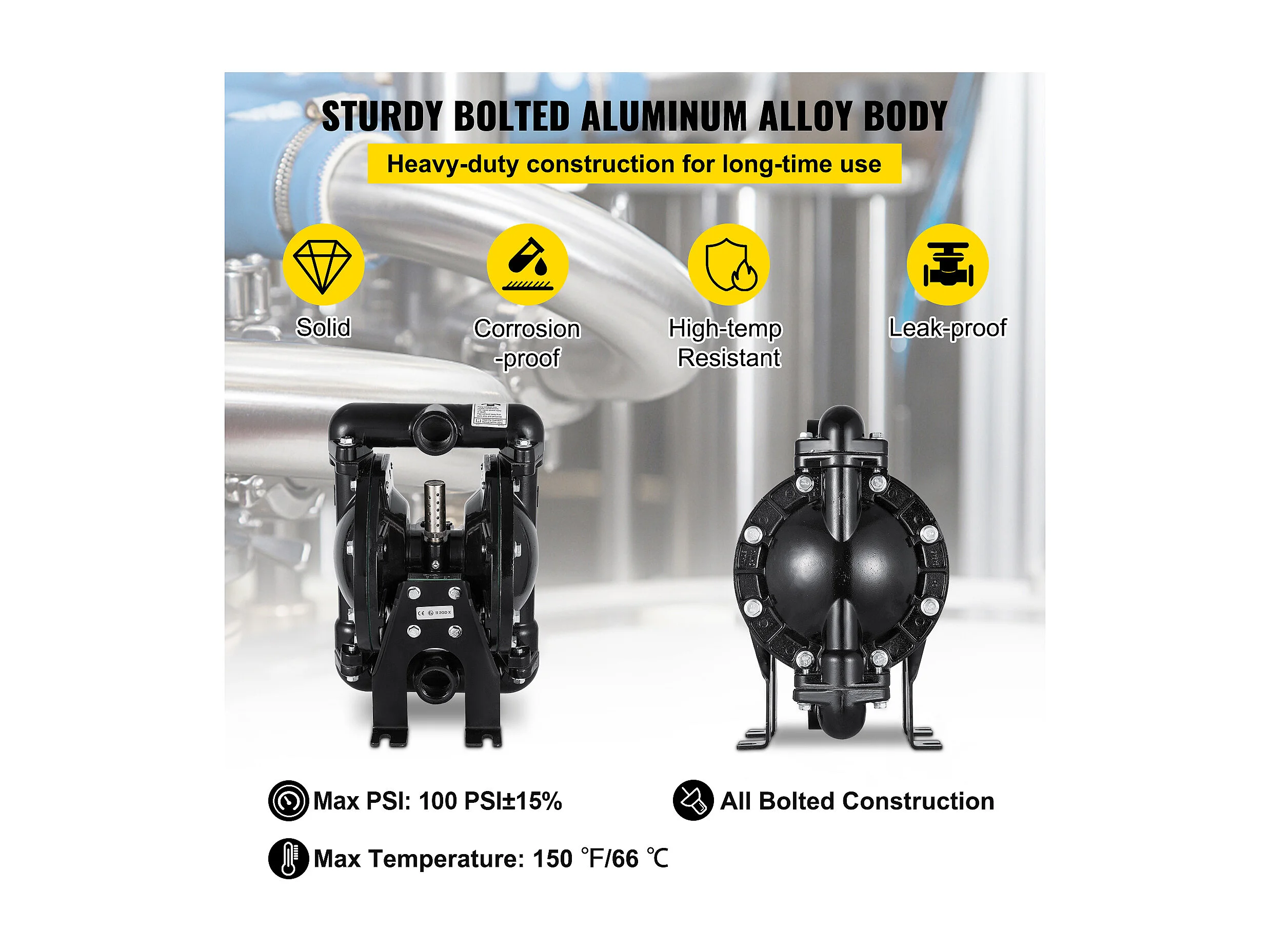 Pompe SucceBuy à Double Membrane Pneumatique, Entrée et Sortie de 1 Pouce, Aluminium, 35 GPM, Max. 120 PSI, QBY4-25LF46 pour Usage Industriel