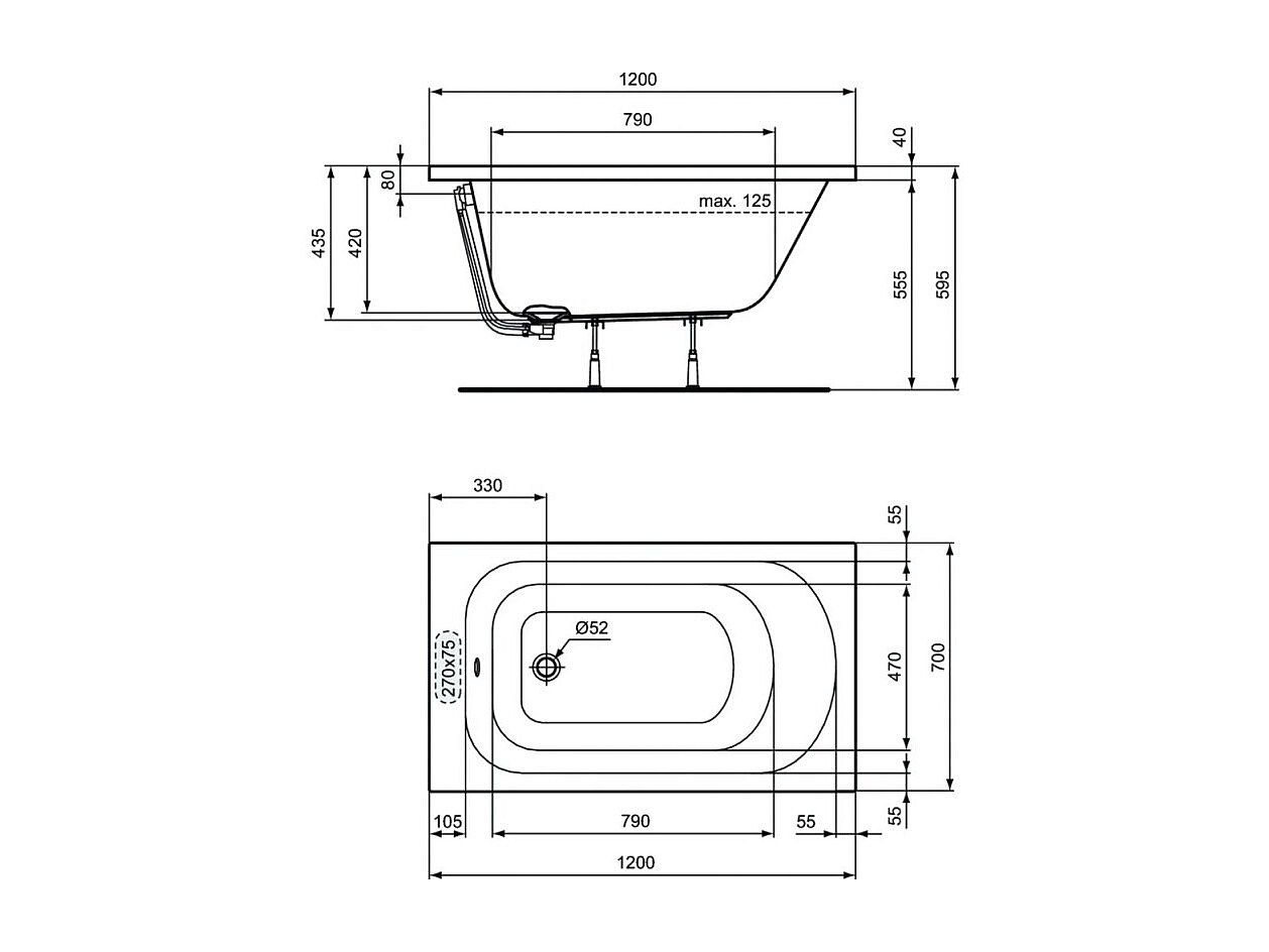 PORCHER Baignoire droite 120x70 Ulysse blanche