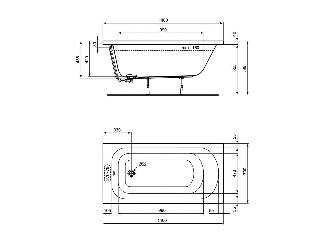 PORCHER Baignoire droite 140x70 Ulysse Blanche blanc