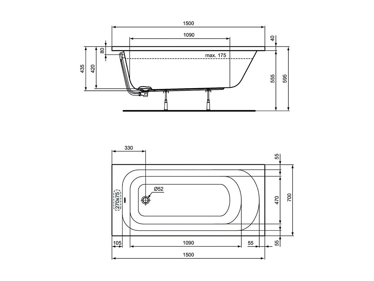 PORCHER Baignoire droite 150x70 Ulysse blanche