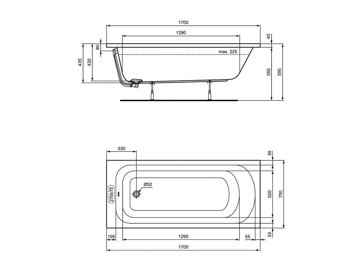 PORCHER Baignoire droite 170x75 Ulysse blanche