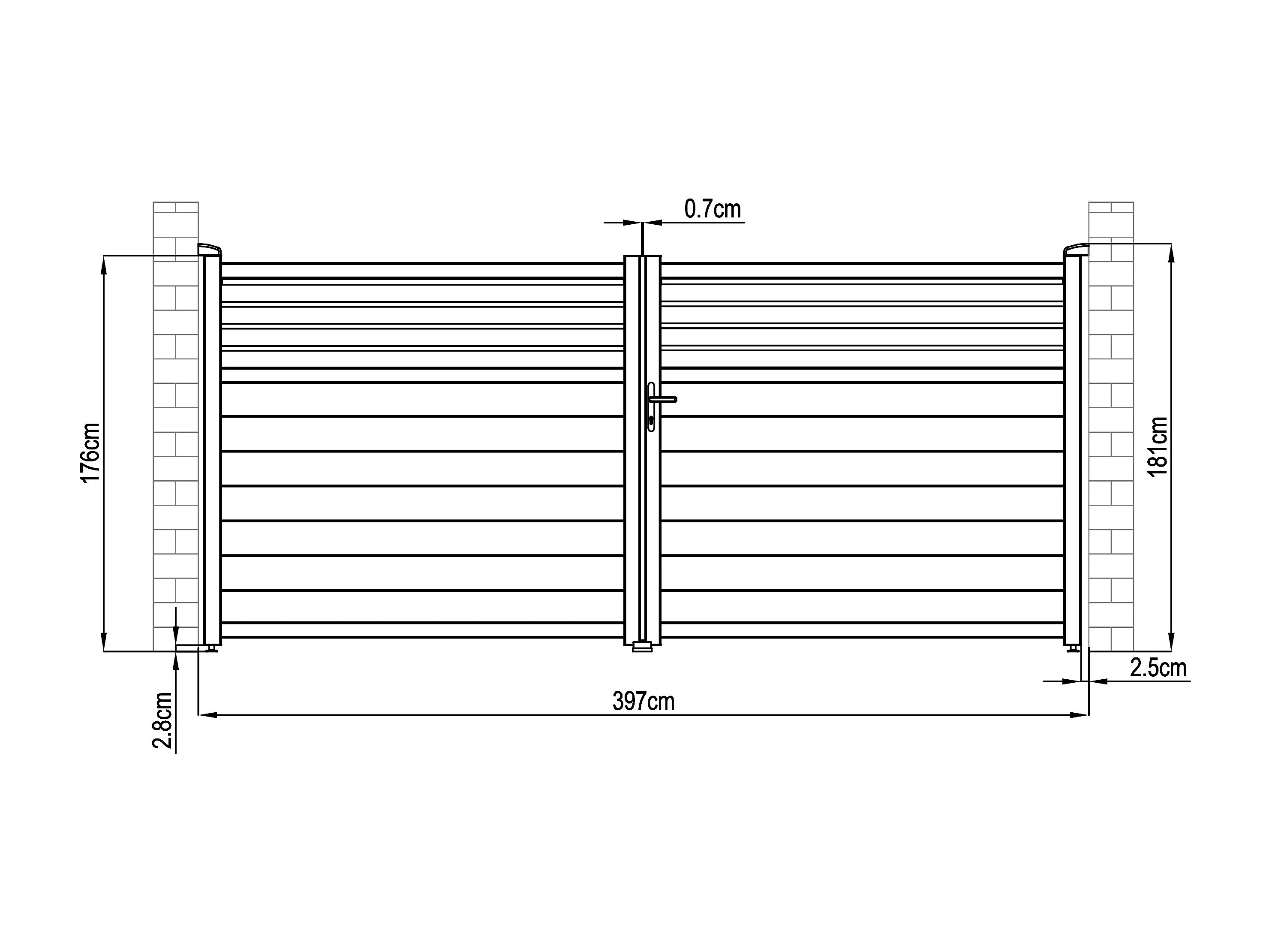 Portail battant aluminium persienné L397 x H181 cm anthracite - VIAZO