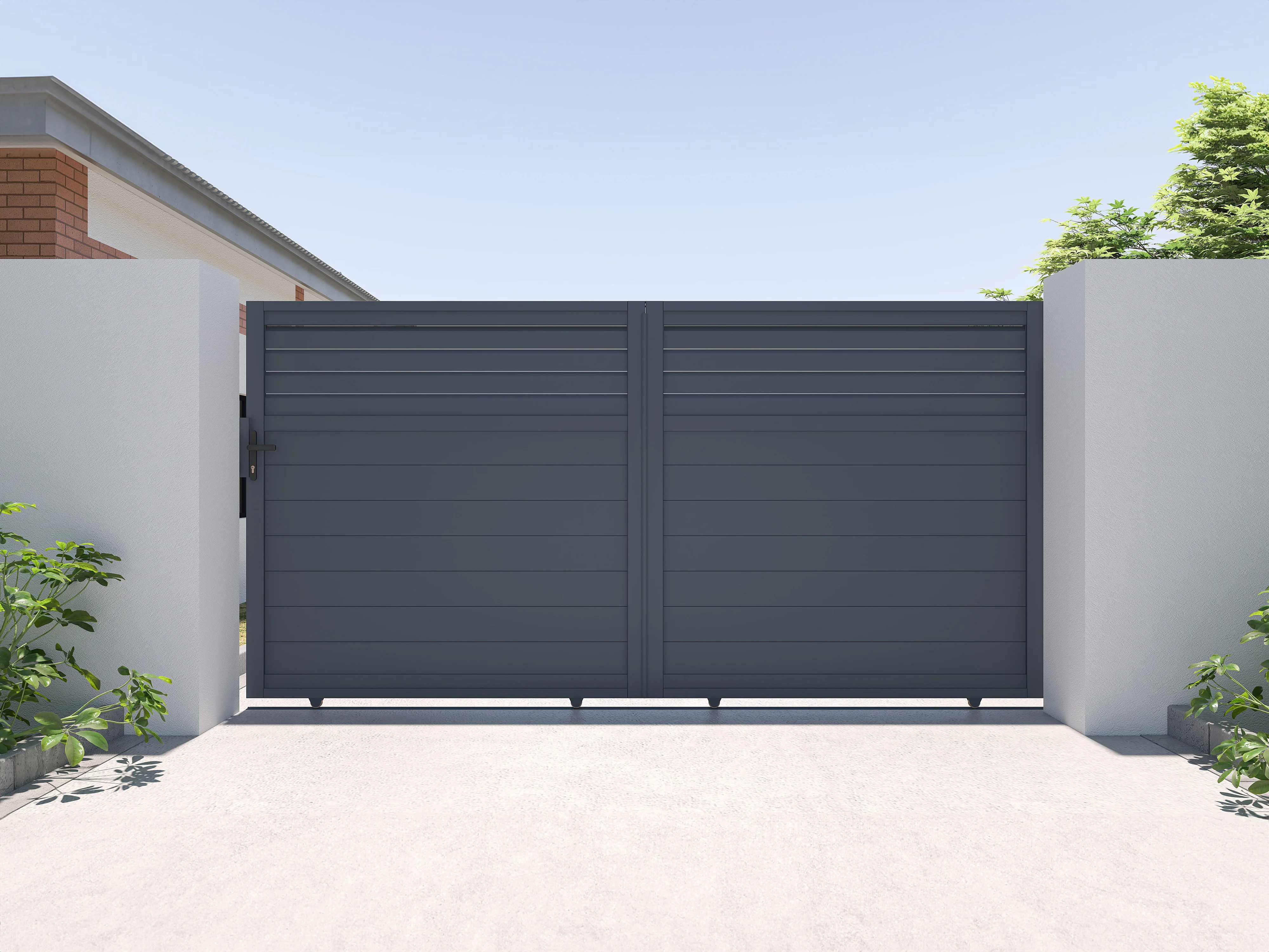 Portail coulissant aluminium persien L374 x H180 cm anthracite - VIAZO