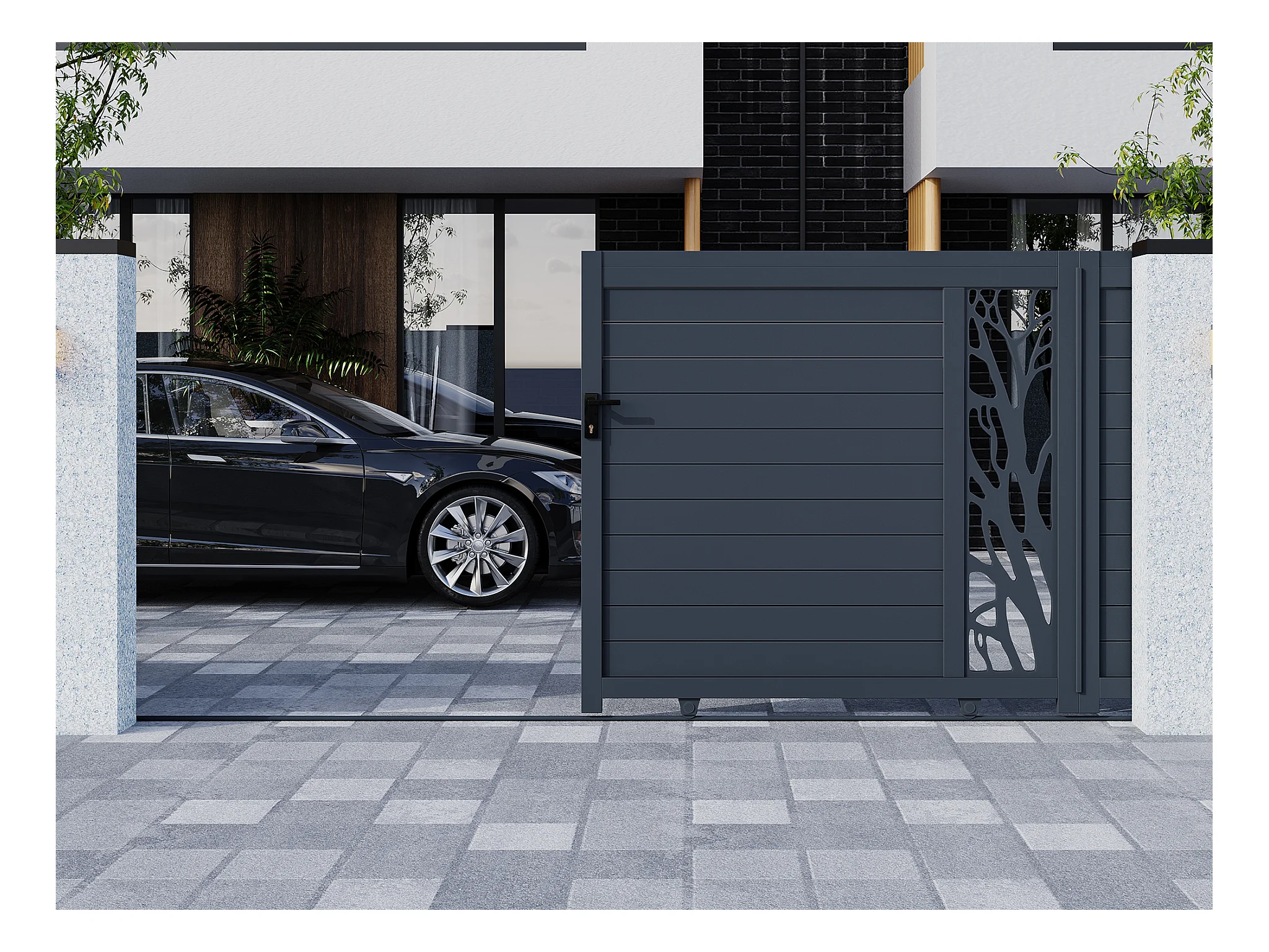 Portail coulissant aluminium semi ajouré à motifs L350 x H187 cm anthracite LABRIT II