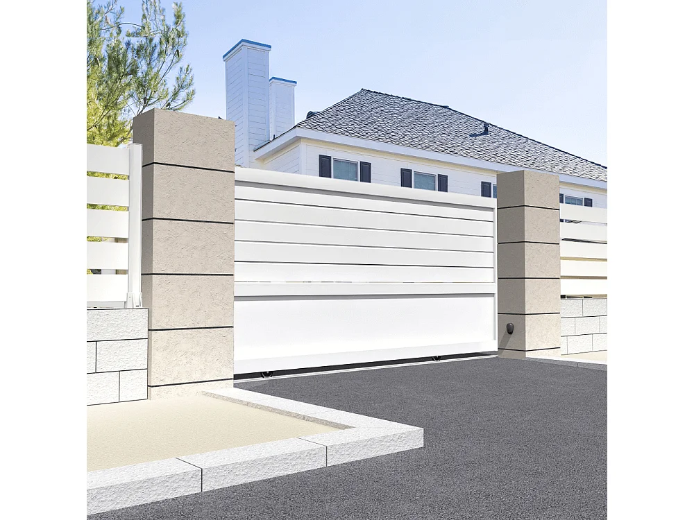 Portail coulissant motorisé mixte L 4000 x H 1864 mm - Blanc satiné RAL9010